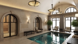 Архитектурную концепцию разработало британское бюро Dyer. Визитная карточка комплекса — фасад: игра света и отражений в стекле создаёт запоминающийся образ. Лобби оформили известные сёстры-дизайнеры Sundukovy Sisters. Они создали уютный камерный клуб с переговорными и камином. В лаунже на стенах — картины современных художников. Выглядит стильно и дорого.