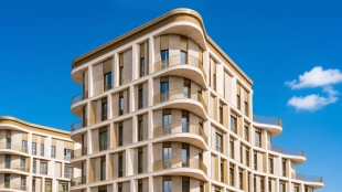 Давайте посмотрим, какой дом получился у девелопера Stone Hedge. Главная архитектурная фишка — динамичный торцевой фасад. Если посмотреть на этот ломанный объём снизу, то мне он напоминает качели жизни со взлётами и падениями.