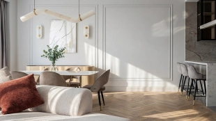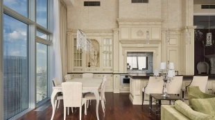 Квартира с панорамными окнами и отделкой в дворцовом стиле