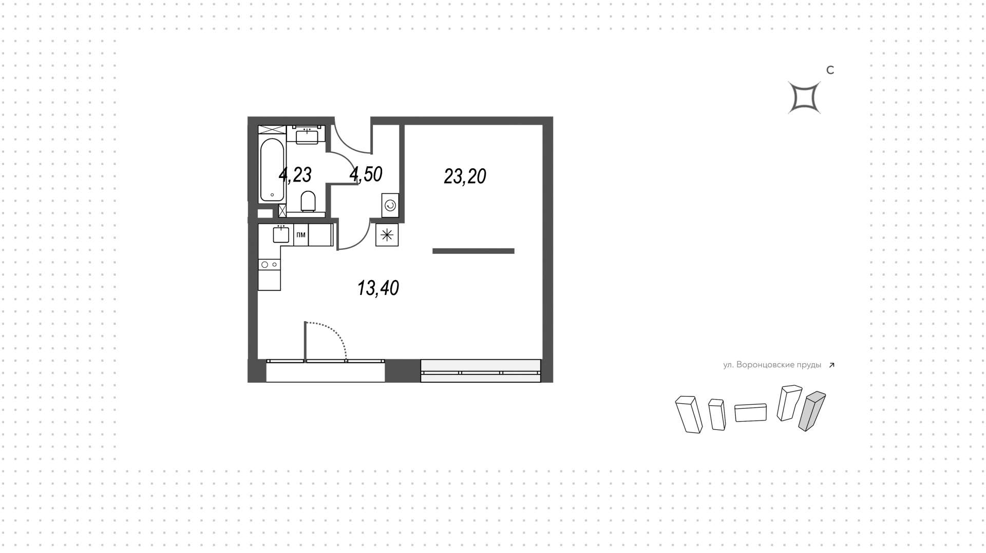Квартира с 1-й спальней