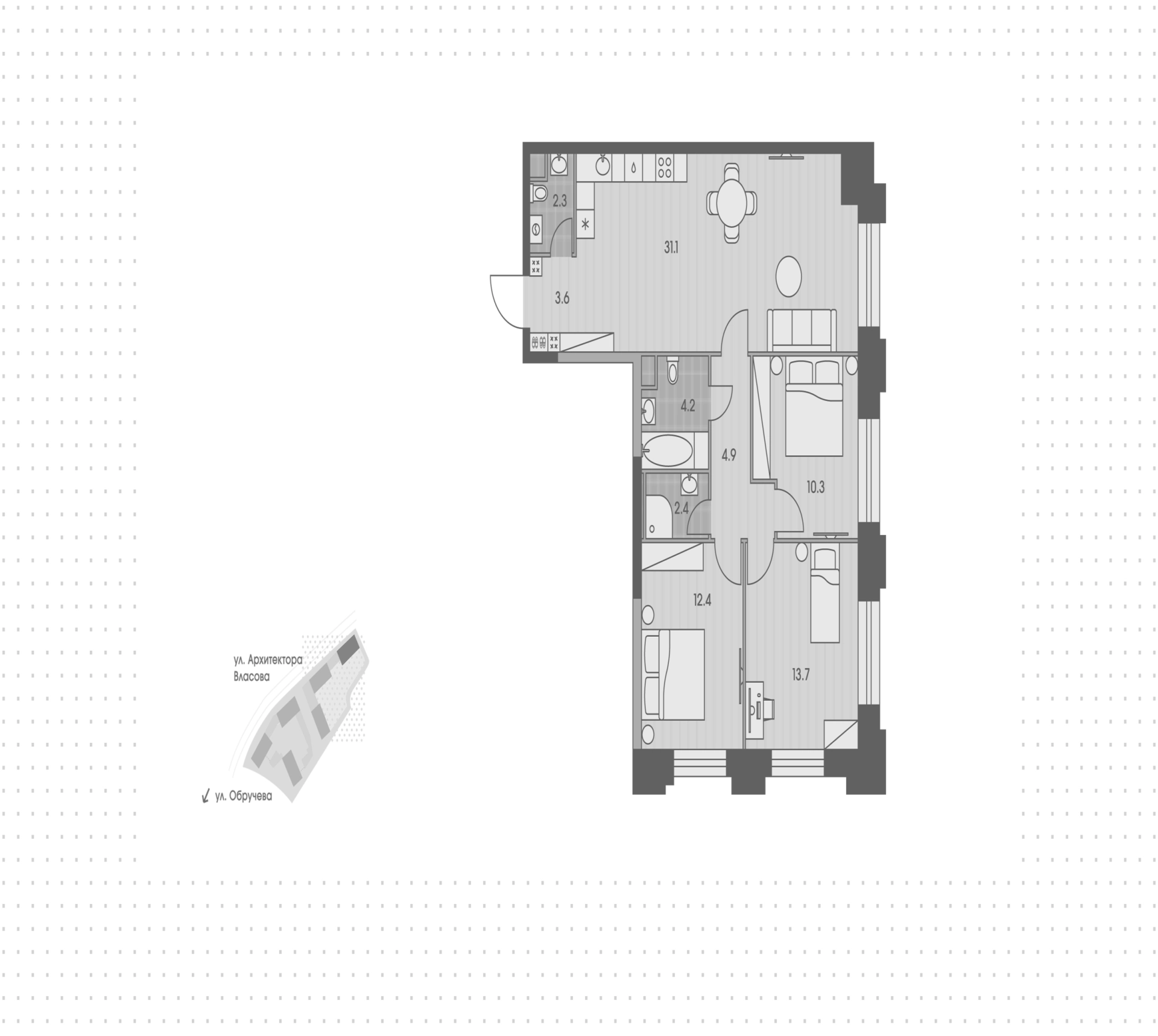 Квартира с 3-мя спальнями
