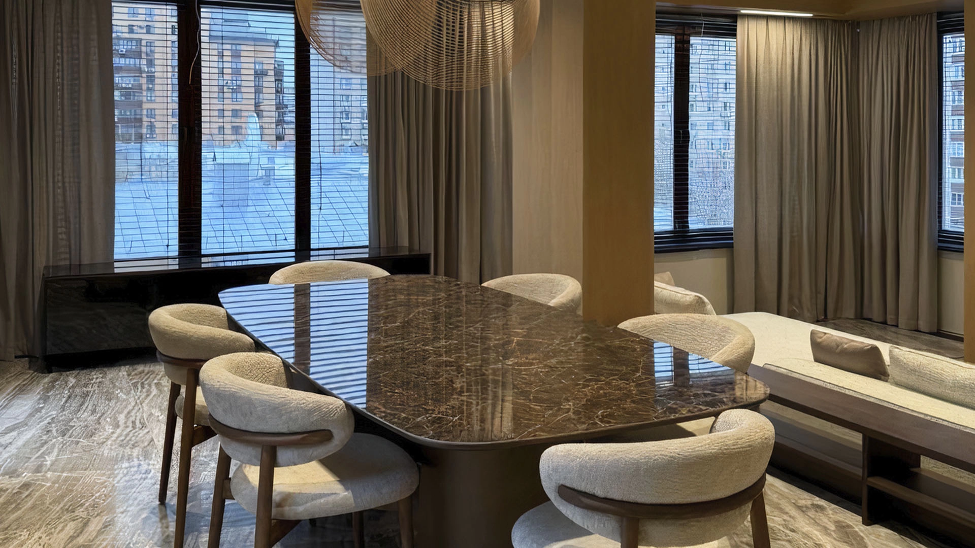 Двухуровневый пентхаус с натуральным мрамором в отделке