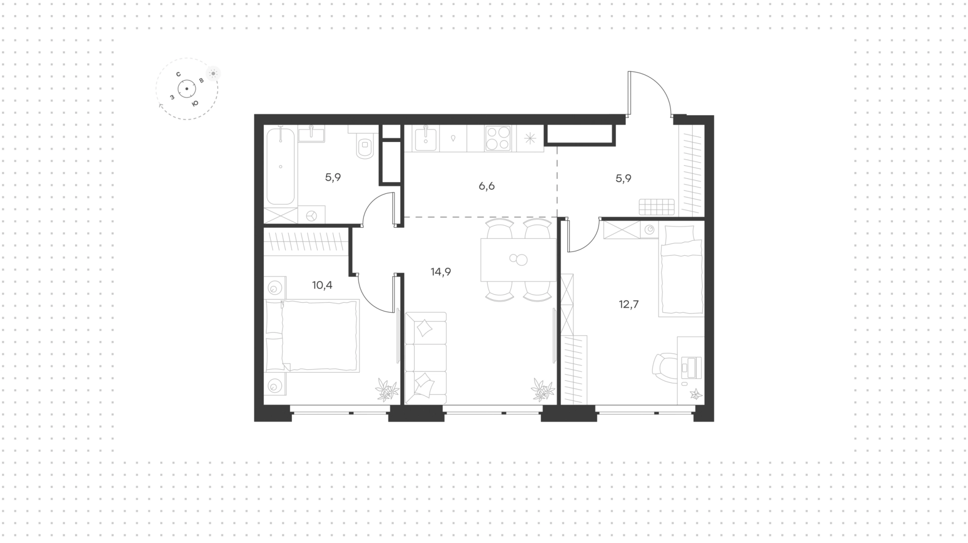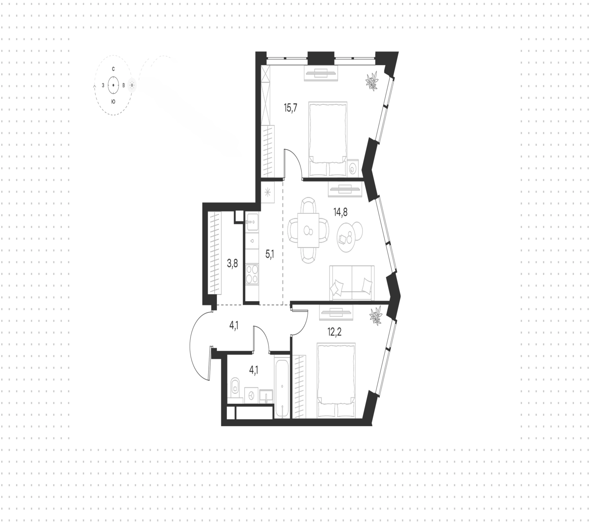 Квартира с 3 спальнями