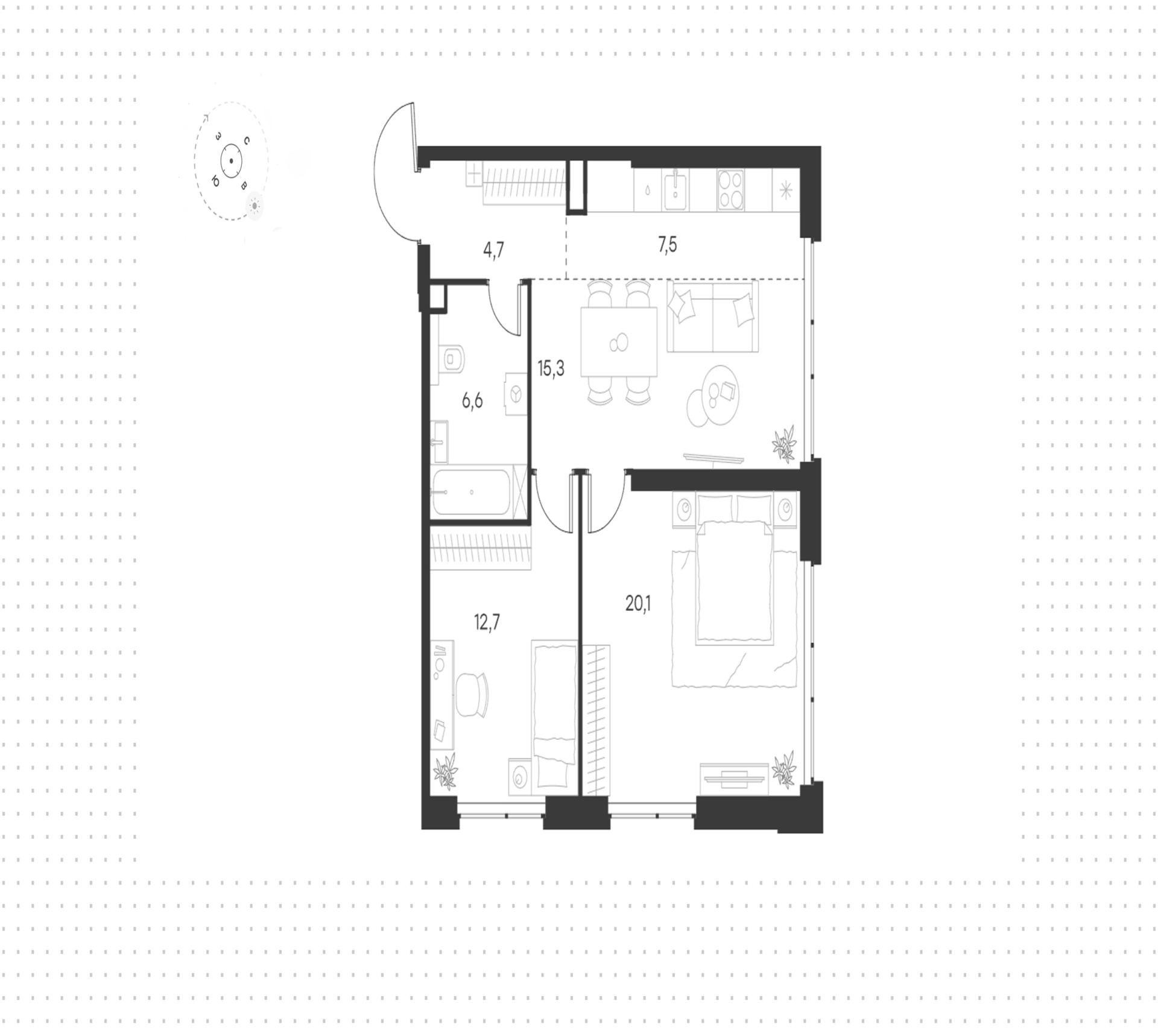 Квартира с 2-мя спальнями
