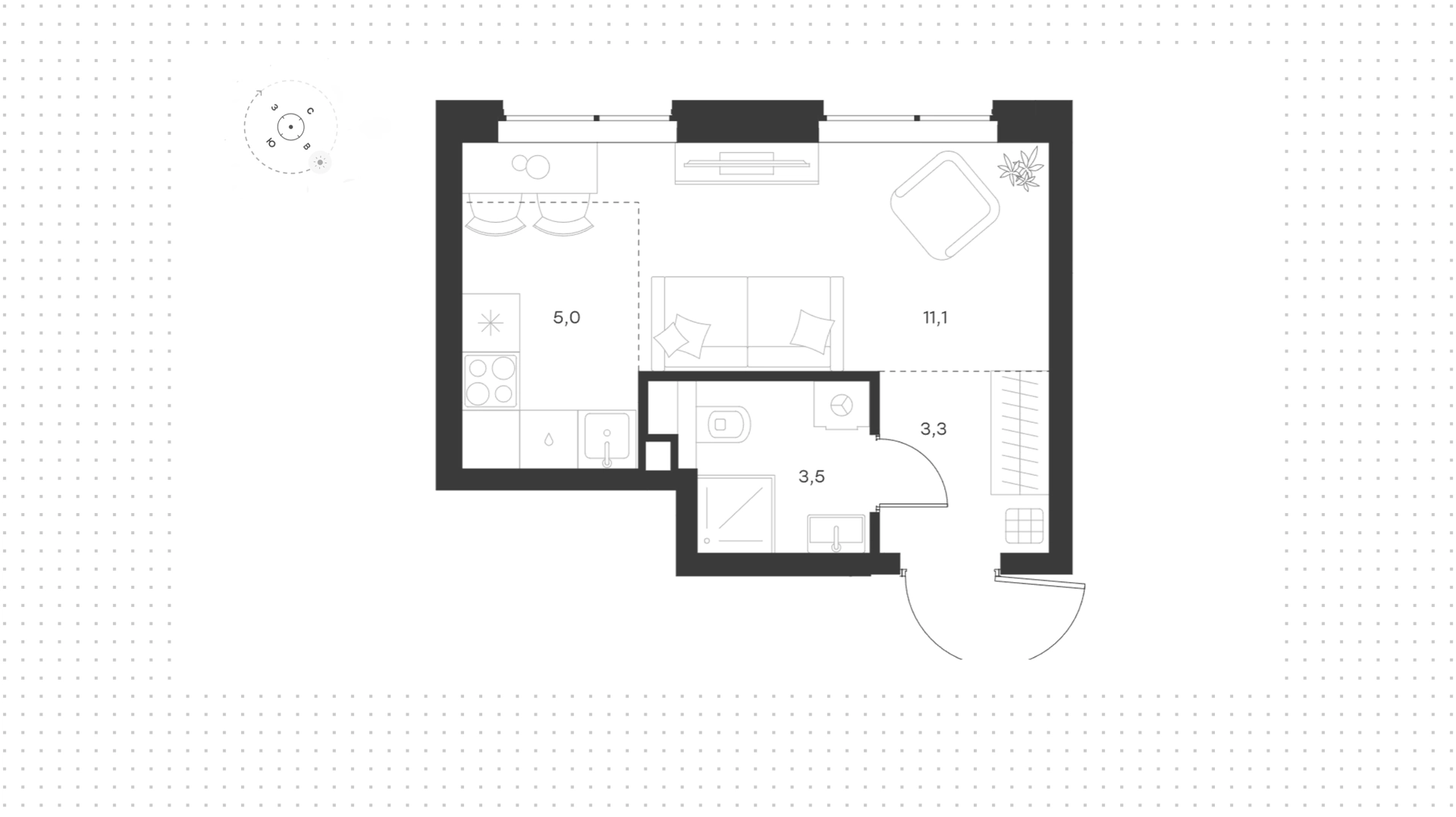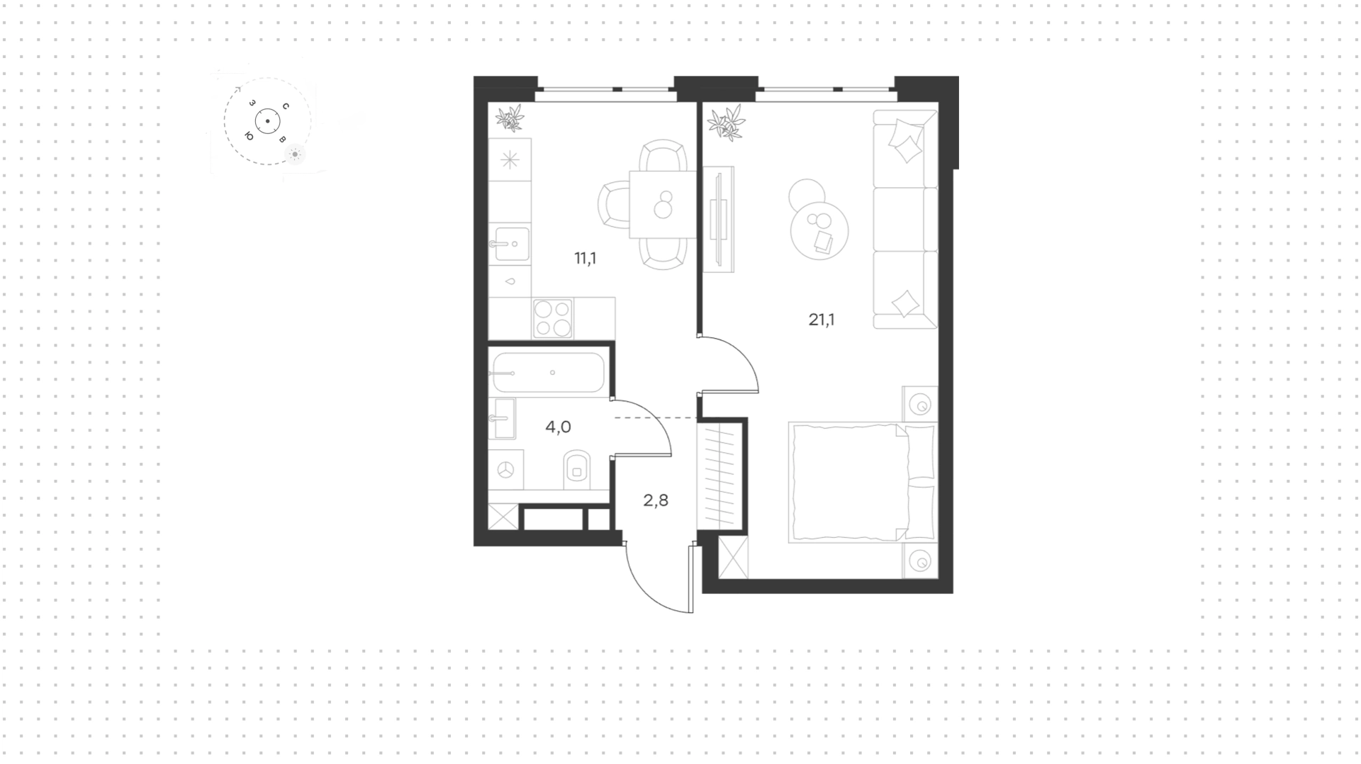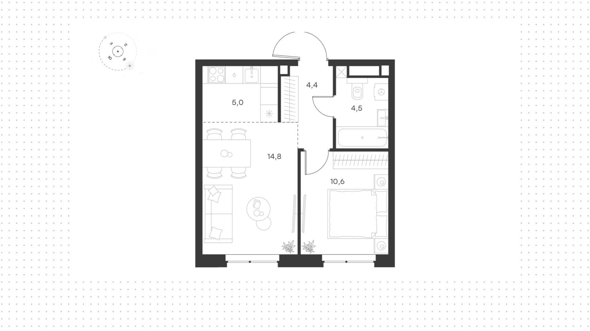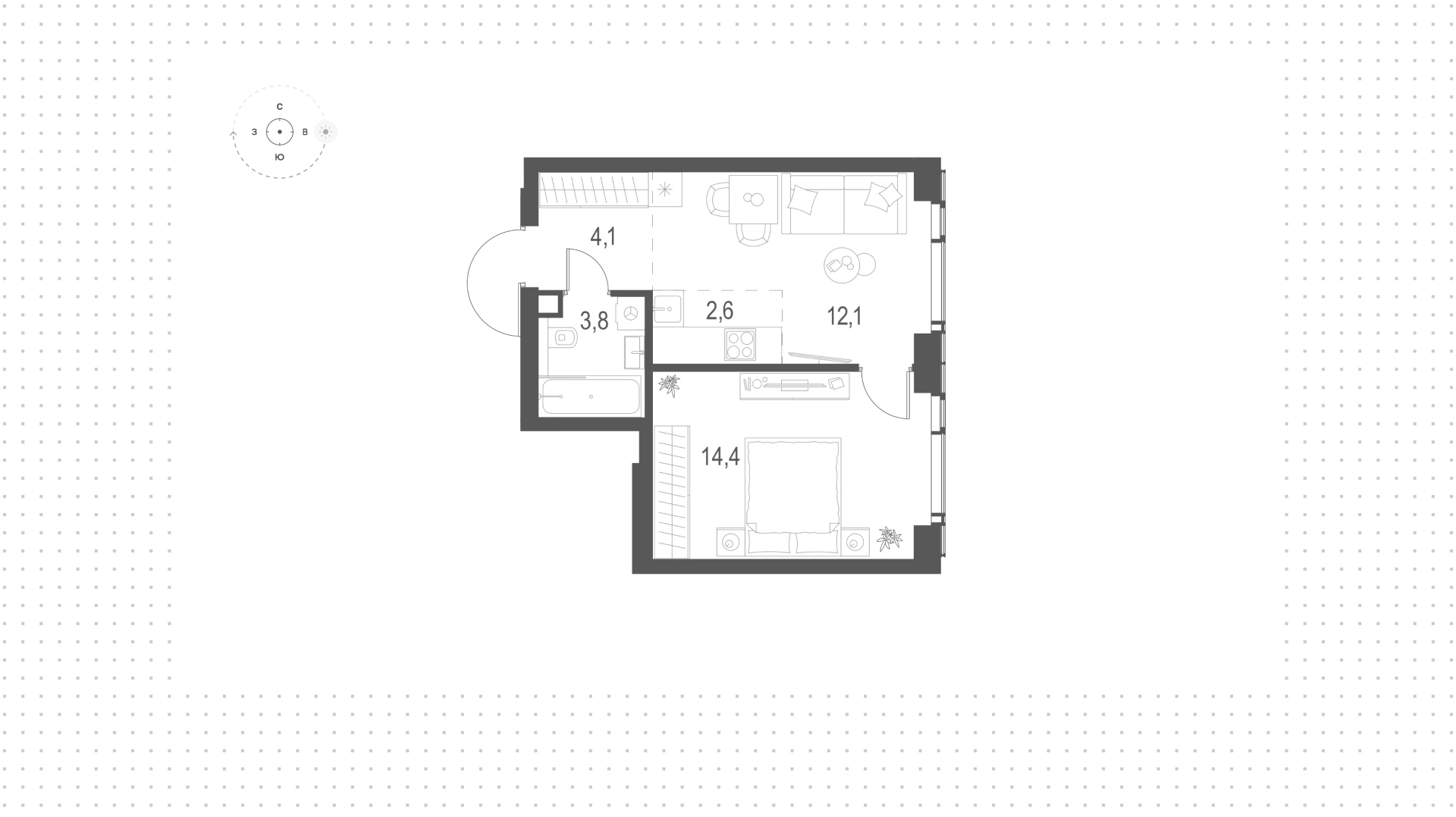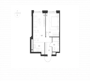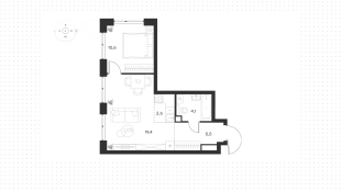 Квартира с 1-й спальней