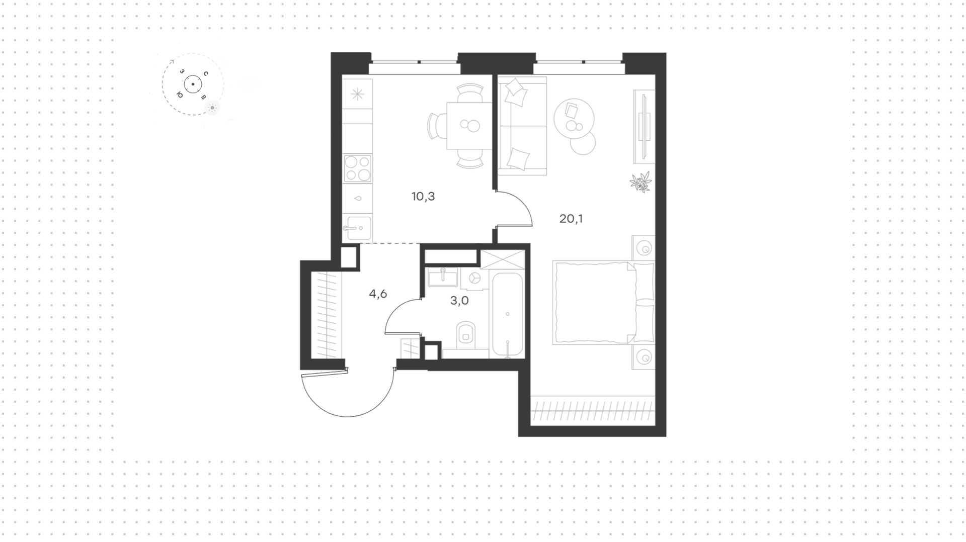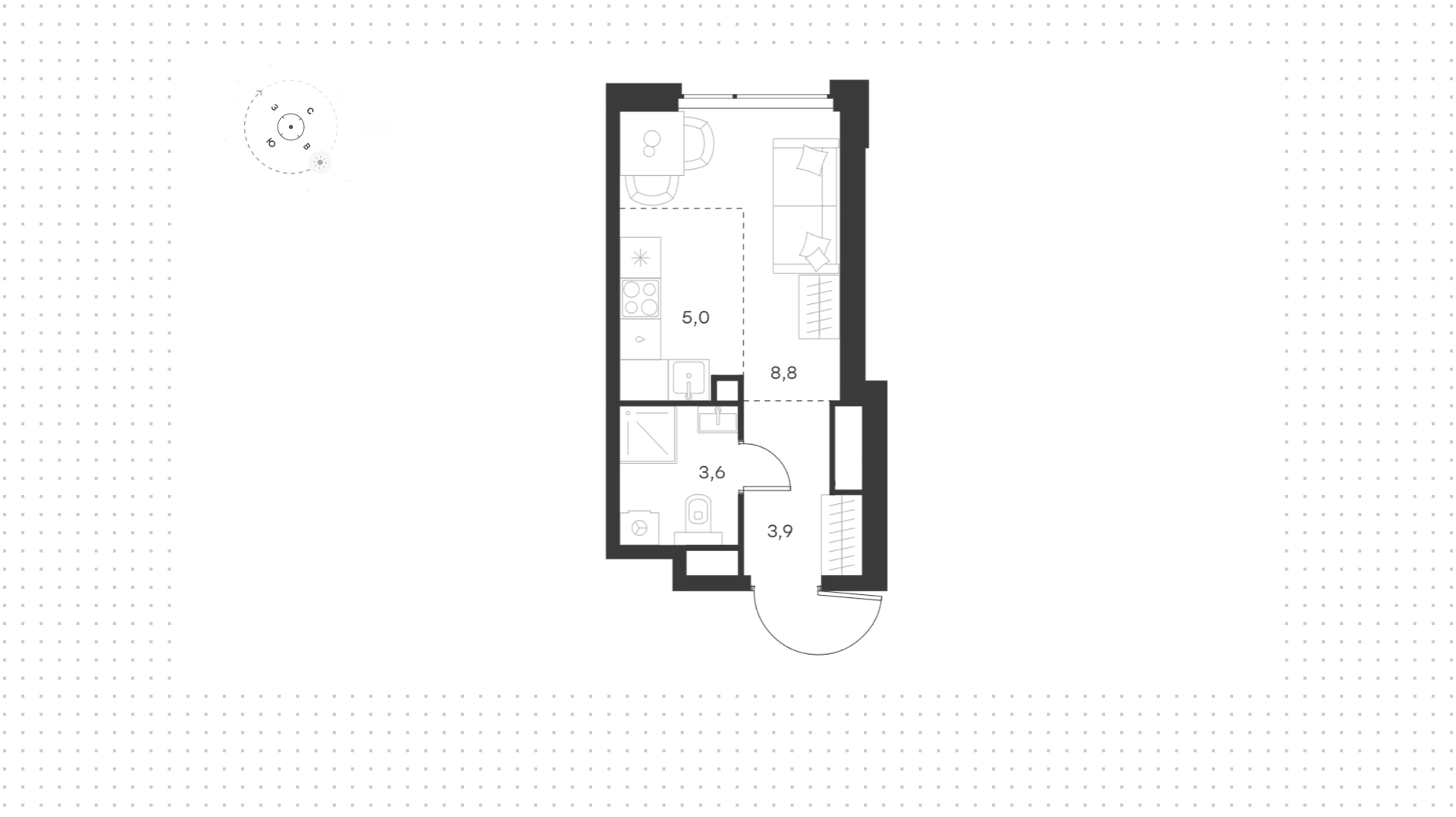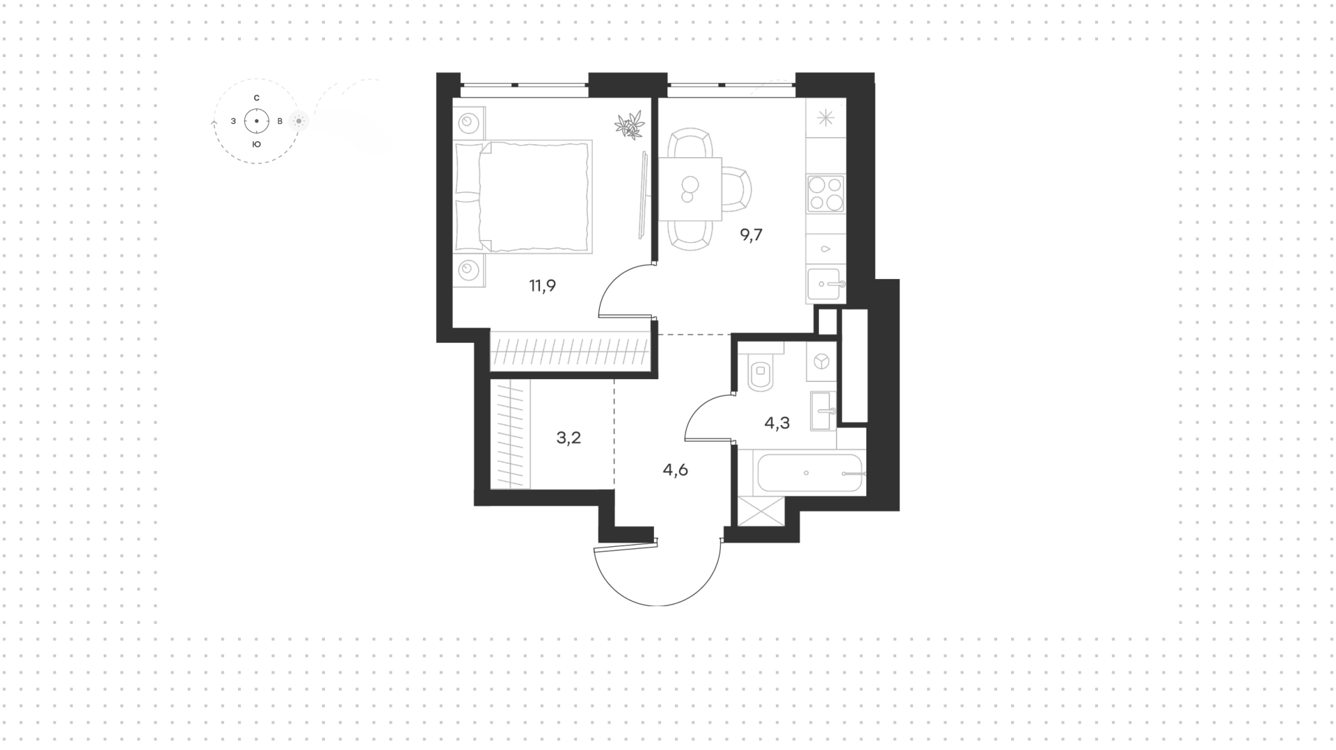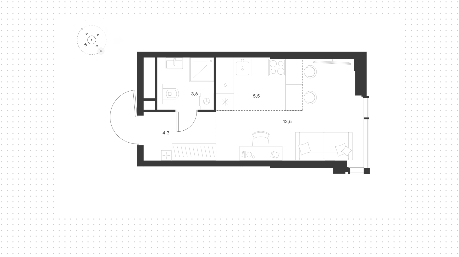 Квартира с 1-й спальней