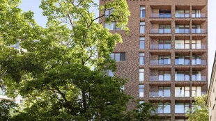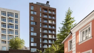 В доме 34 квартиры, включая четыре пентхауса с террасами и каминами.
