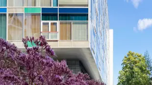 В комплексе предусмотрено современное остекление, что обеспечивает хорошую тепло- и звукоизоляцию. Окна из алюминиевого немецкого профиля Schüco создают комфортную атмосферу в апартаментах. Также в доме установлены бесшумные лифты Thyssen Krupp с авторской отделкой.
