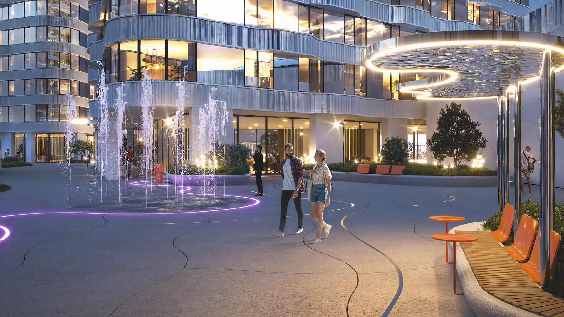 На территории комплекса предусмотрены спортивные площадки, зоны для йоги, детские площадки и спортивная инфраструктура. Также рядом расположен спортивный парк, где можно заниматься фигурным катанием и хоккеем.