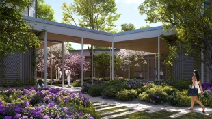 На территории кластера построят спортивные и детские игровые площадки, торговые помещения, кафе, рестораны и паркинг. Во дворе будет детский сад и школа для начальных классов, коворкинг и библиотека. Поблизости находятся медицинские учреждения и зелёные зоны для прогулок.