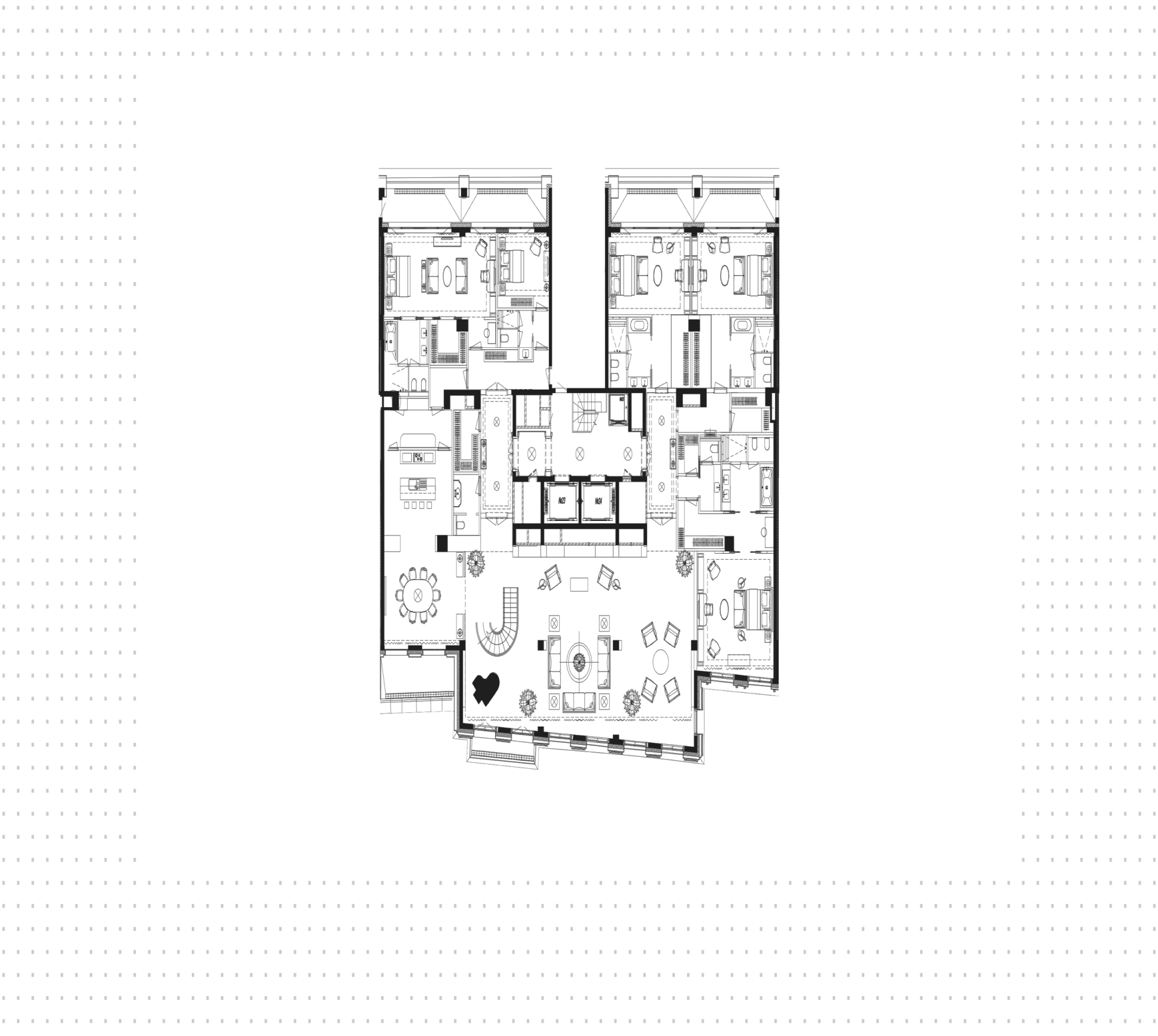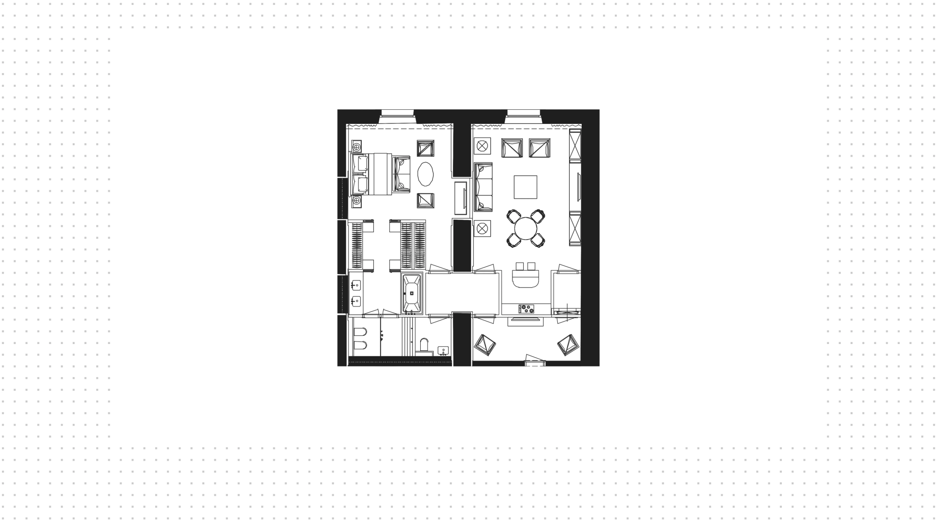 В жилом комплексе ЖК «Резиденция 1864» доступны различные варианты апартаментов: лоты с 1-4 спальнями площадью от 105 м² и двухуровневые пентхаусы с 7-метровыми потолками и террасами. Также вы можете приобрести роскошную виллу с бассейном, спа-зоной и частной парковкой на 8 автомобилей.