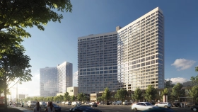 Комплекс состоит из 4 башен высотой 22-29 этажей. Контрастные стеклянные фасады с красными и жёлтыми элементами— работа Александра Скокана из бюро «Остоженка». На стилобате комплекса построили детскую площадку, где ваши малыши будут играть в догонялки, стоп-земля и казаков-разбойников. А вы в это время — на уютной лавочке в лаунж-зоне — сможете читать новый выпуск Forbes или изучать финансовую аналитику компаний.
