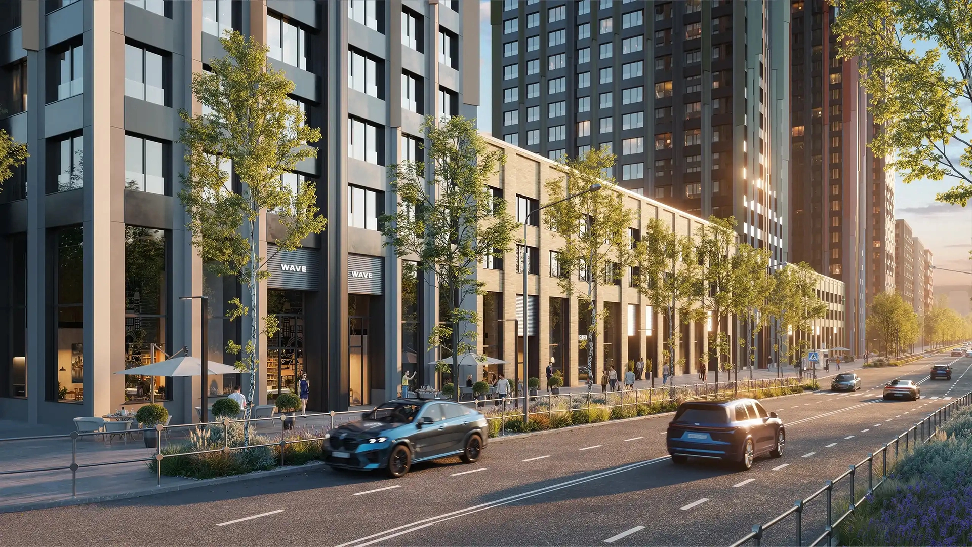 WAVE — это уникальное сочетание энергии мегаполиса и природного спокойствия. Район предлагает огромную благоустроенную территорию, продуманную инфраструктуру и инновационные технологии, которые создают комфортную среду для жизни.