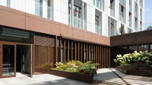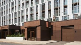18-storey premium-class house in Presnensky district of Moscow. The facade of the building with panoramic glazing is finished with natural stone and clinker brick. The private territory is under 24-hour security, a children's playground is organized in the courtyard.