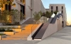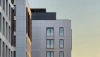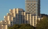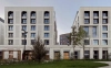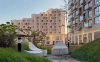 The architecture of the low-rise buildings of the first phase resembles an amphitheater, assembled from light-colored blocks that grow upwards in steps. These are not the usual boxes, but a lively play of volumes. The sun lays on the facades and colors them in peach or golden shades.