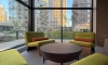In the lobby, productologists «Etalon» put bright green chairs against a background of gray and white stone. Bar counters. Interesting light. In general, it looks nice.