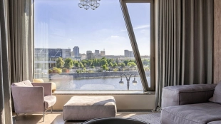 View apartment with premium renovation and large panoramic windows