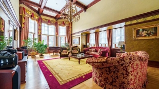 European style residence with fireplace room and spa area