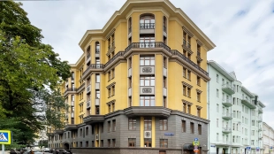 The residential complex Dom Lavrushinsky offers unusual advantages such as panoramic views of the historical center of Moscow, including the Kremlin and St. Basil's Cathedral. The complex rises above the low-rise surrounding development, so the apartments have great views.