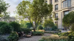 The courtyard has an 8-hectare private garden. You stroll through the green alleys with your stroller, read a book on a bench in the shade of the trees or go for a jog.