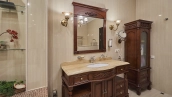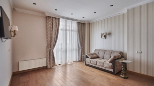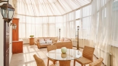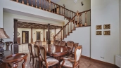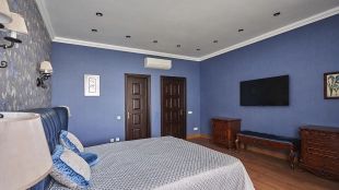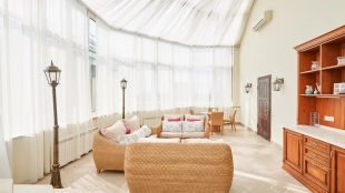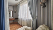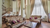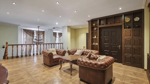 Two-level penthouse with winter garden and terrace in the business class complex "Dominion". The apartment with total area of 379 m² is located on the 18th floor with a beautiful view of the city and the capital's rooftops. The apartment is designer renovated with elements of English classics, natural wood is used in the finishing. Thanks to panoramic and arched windows the space is filled with light and warmth. The apartment is fully furnished and equipped with all necessary appliances. Air conditioning system is installed.