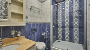 1st level: kitchen-dining room, living room with dining area for 8 people, master bedroom with dressing room, sitting area and bathroom with shower, second bedroom with bathroom, guest bathroom with shower, dressing room, hallway. 2nd level: master bedroom with a spacious dressing room, rest area and bathroom, an additional room that can be used as a study or guest bedroom, recreation area with a library, winter garden with access to a large terrace, guest bathroom, laundry room. The price includes 2 parking spaces in the underground parking.