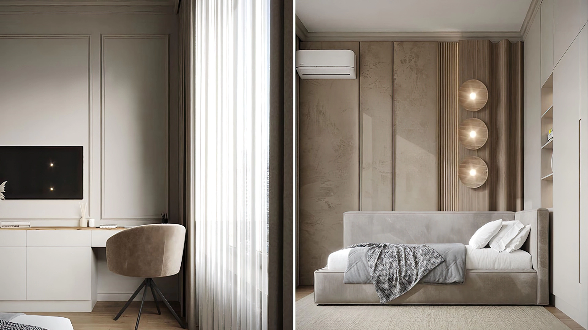 View apartment with 2 bedrooms with total area of 70 m² in the complex "Silver Park" on the 19th floor. The apartment is designer finished in neoclassical style with premium materials. American walnut parquet flooring on the floor, Little Greene paint on the walls and custom-made panels. Electricity BTicino, sanitary ware Villeroy&Boch and Nicolazzi, pipes - Rehau, faucets from Gessi, Keuco, ceramic Italian tiles Porcelanosa, Atlas Concorde.