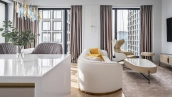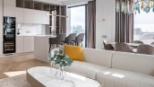 Corner apartment with modern interior in laconic style, 159 m²