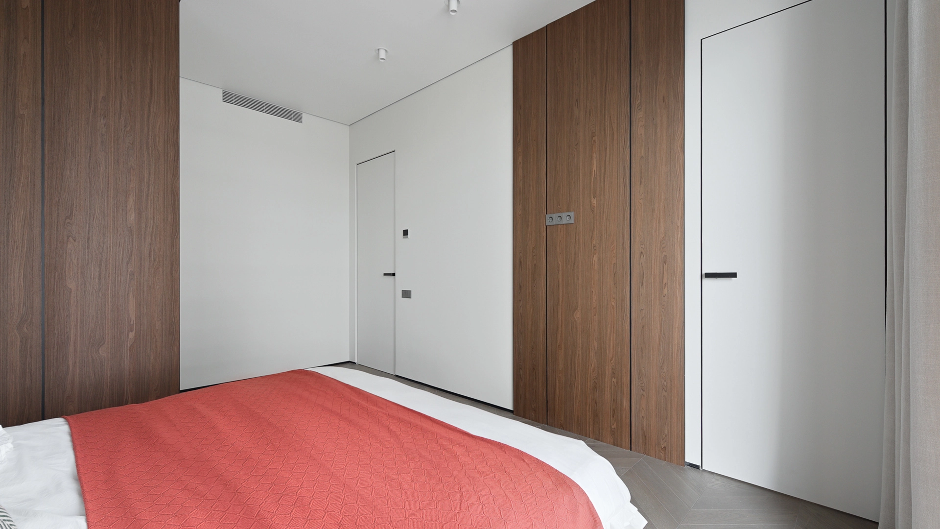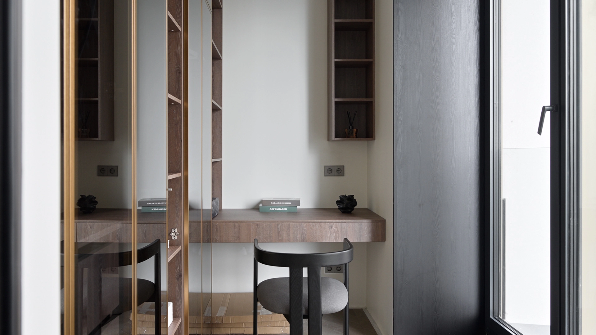On the first level there is a spacious kitchen-living room, which will become a favorite place for family dinners and movie nights, a master bedroom with a dressing room and a bathroom, a small study, a laundry room and a guest bathroom. The second level accommodates two more master bedrooms with en-suite bathrooms and walk-in closets. Thanks to panoramic glazing and a ceiling height of 3.1 meters, the space is always full of light and fresh air.