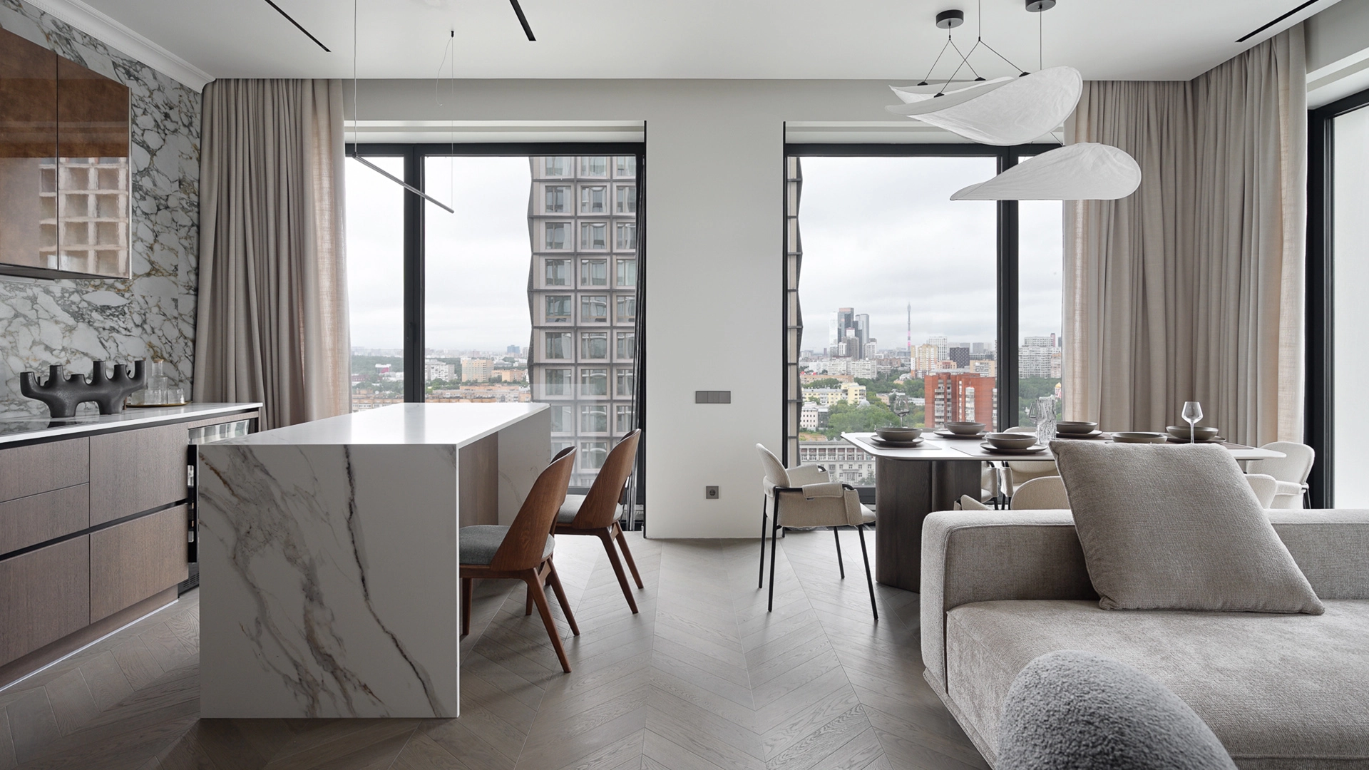 A 3-bedroom duplex apartment in Prime Park premium class complex in Presnensky district. The apartment with total area of 170 m² is located on the 20th floor and is currently at the final stage of renovation. The planned completion date is August 2025. The apartment has a voice controlled smart home system installed and configured. There is climate control, in-floor convectors, air breezers, supply and exhaust ventilation and humidification system.