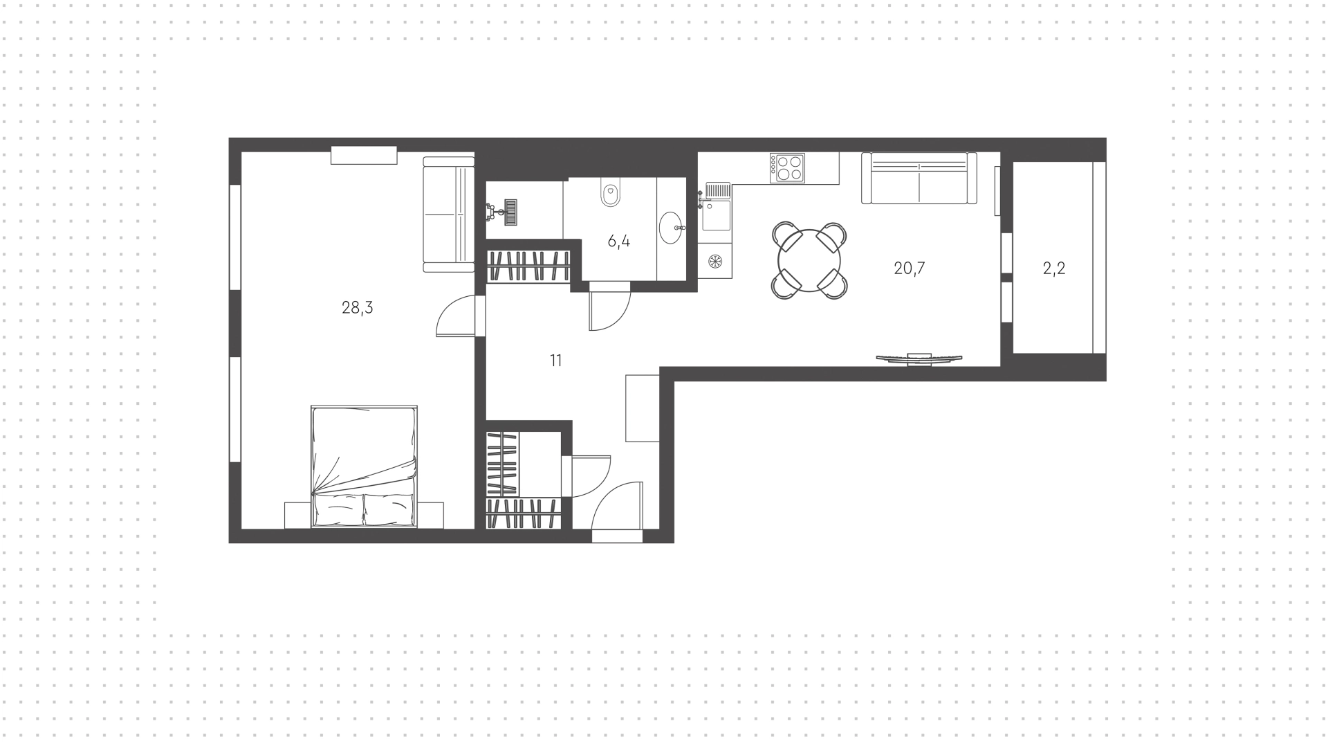 Apartment c 1 спальней, 70 м² в ЖК Dynasty, 21 этаж