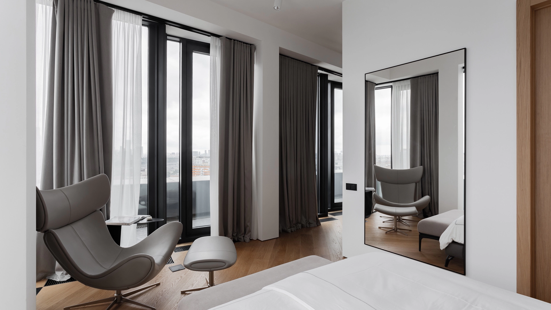 Modern and high-quality materials are used for facade finishing, which emphasize the style and premium class of the complex.