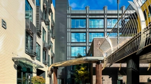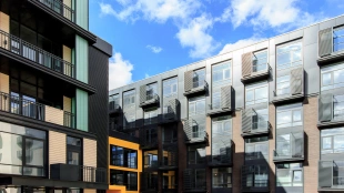 The inner territory of the complex is turned into a cozy space with playgrounds, landscaping and a private courtyard.