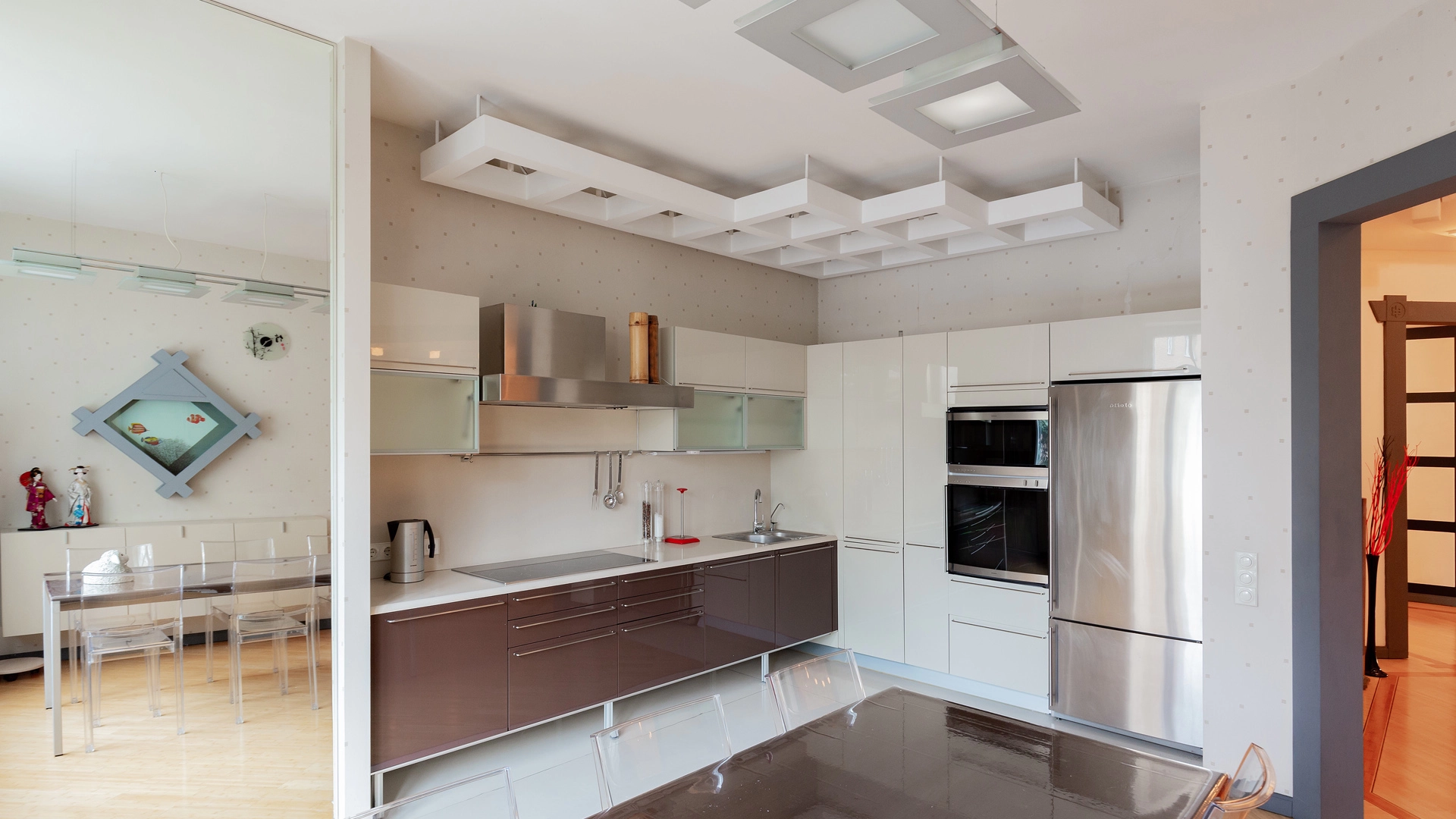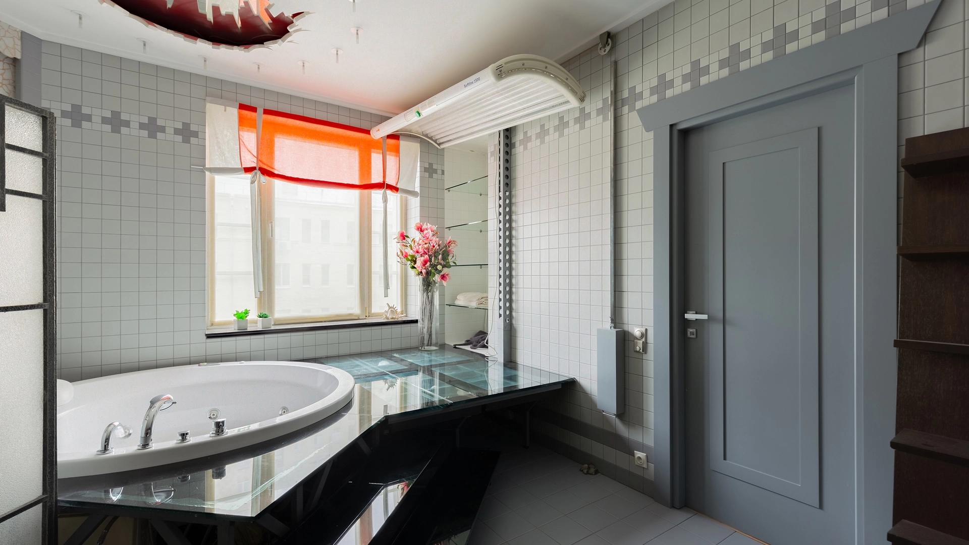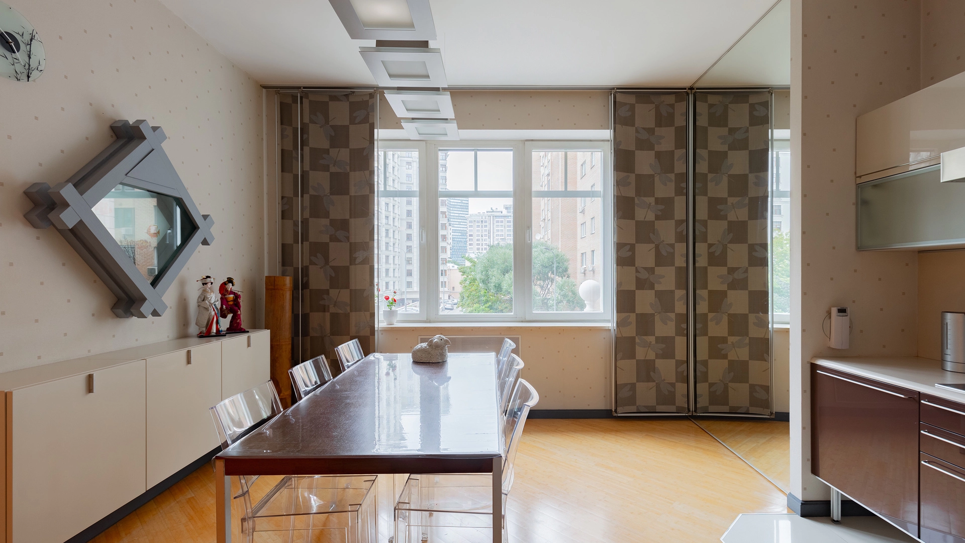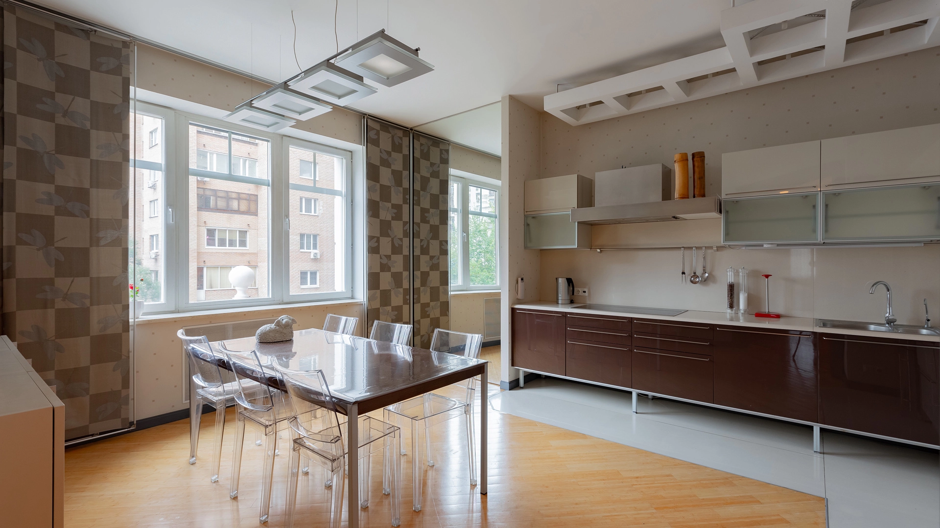 Spacious 2-bedroom apartment with a total area of 130 m² in a premium class complex "Novopeskovsky". The apartment has a designer finish in a modern style. Layout: living room, kitchen-dining room, master bedroom with its own bathroom with a window, second bedroom, large dressing room, bathroom with shower, sauna, hall. The apartment is equipped with furniture and appliances. There is a system of supply ventilation and air conditioning. The windows overlook the courtyard.