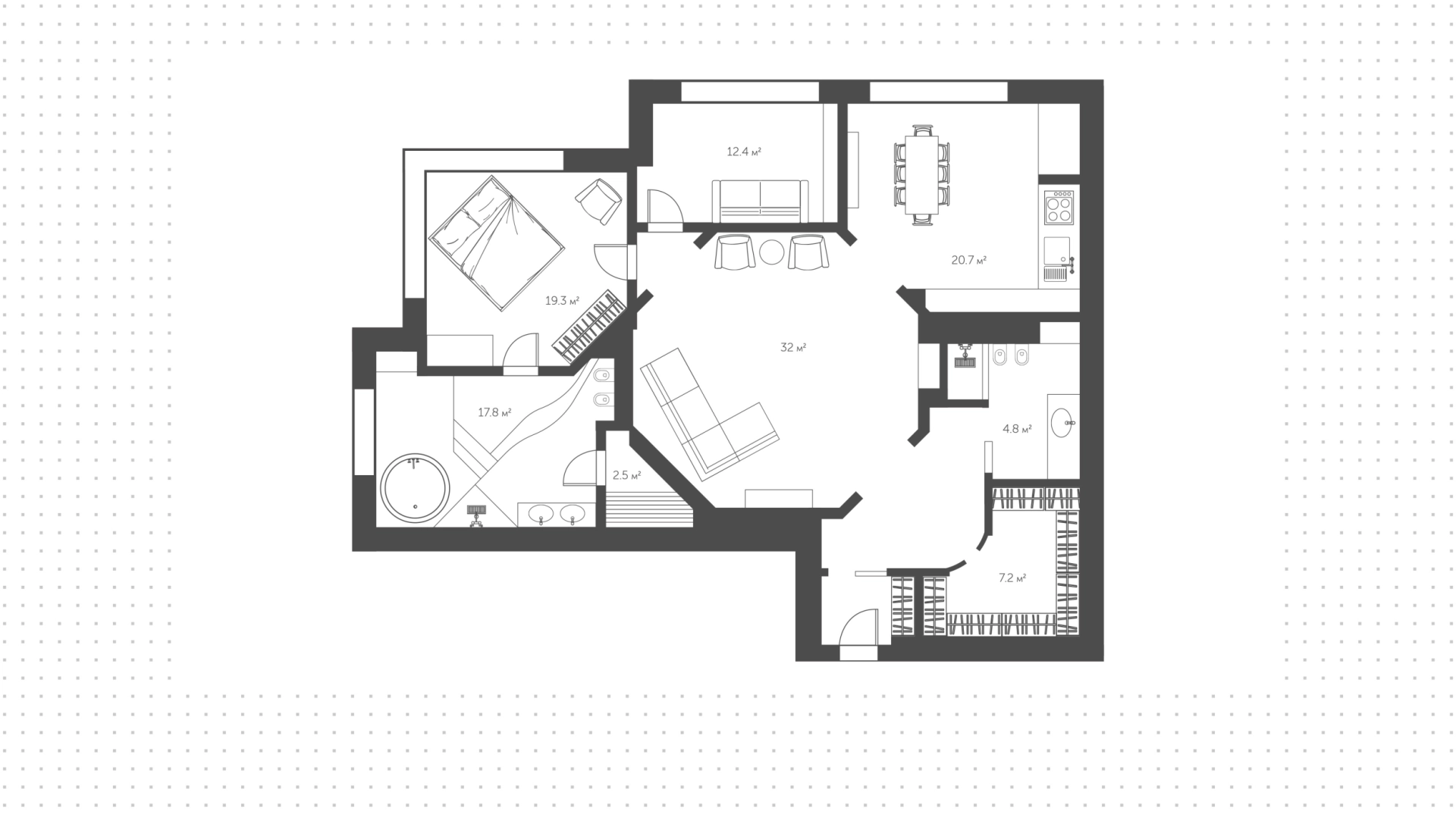 Apartment c 2 спальнями, 130 м² в ЖК Novopeskovsky, 2 этаж