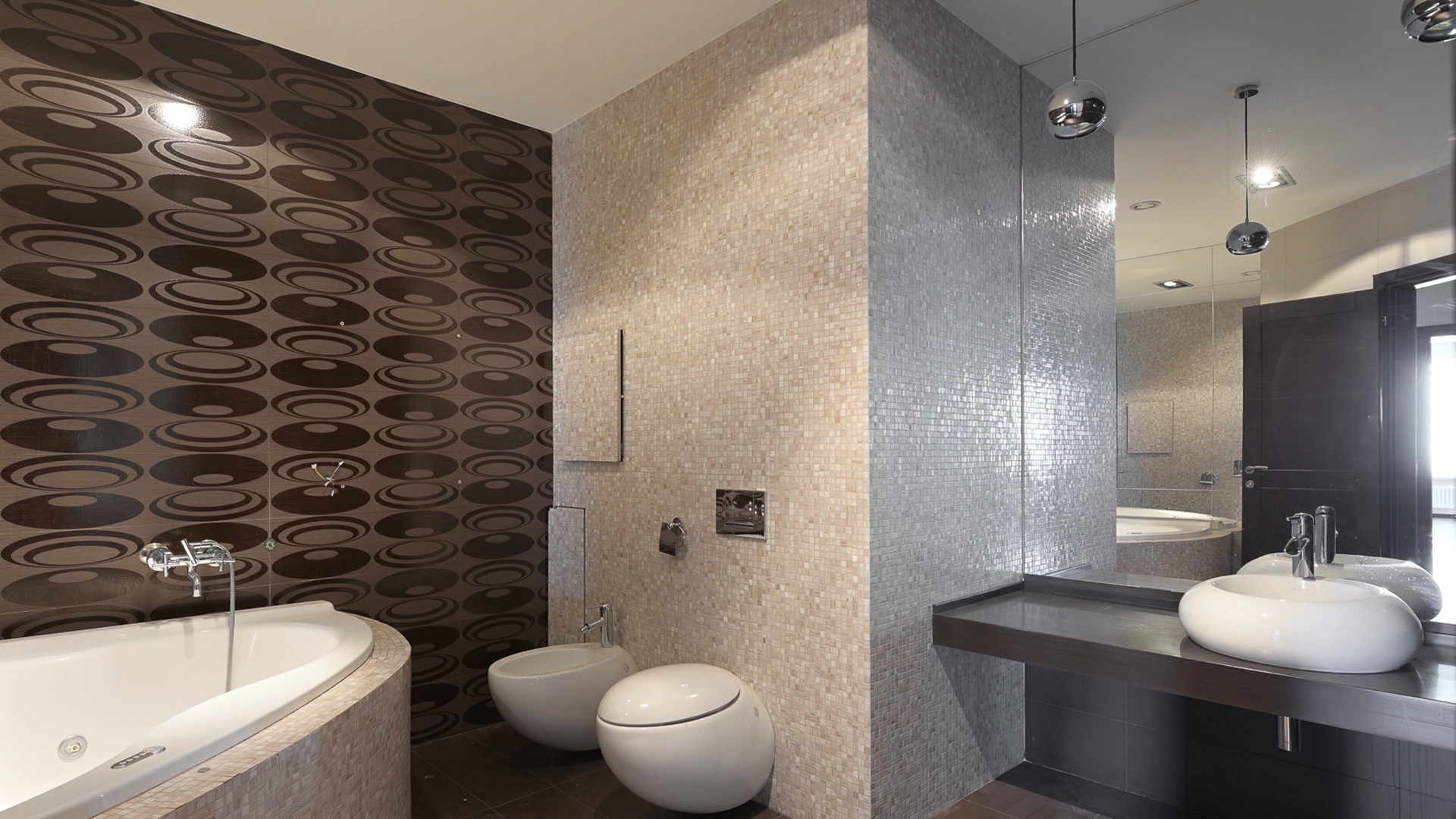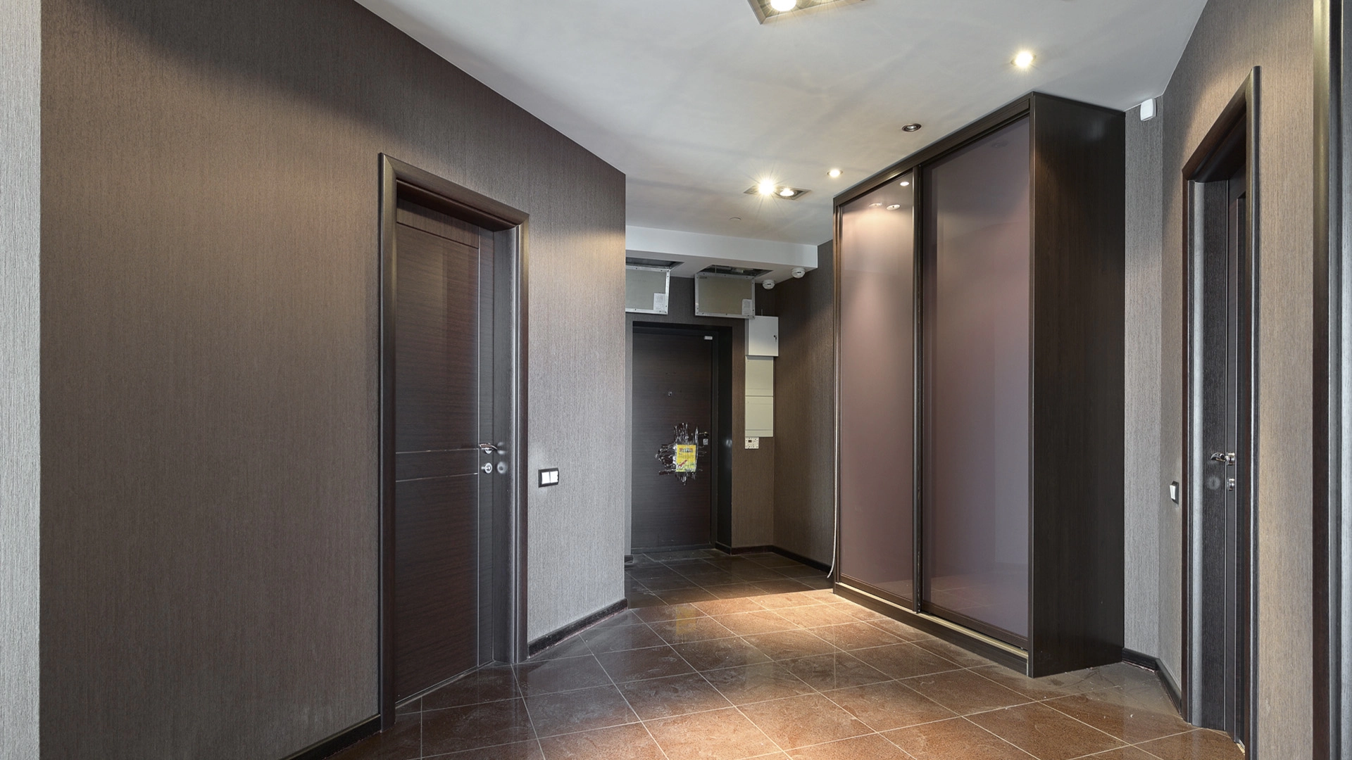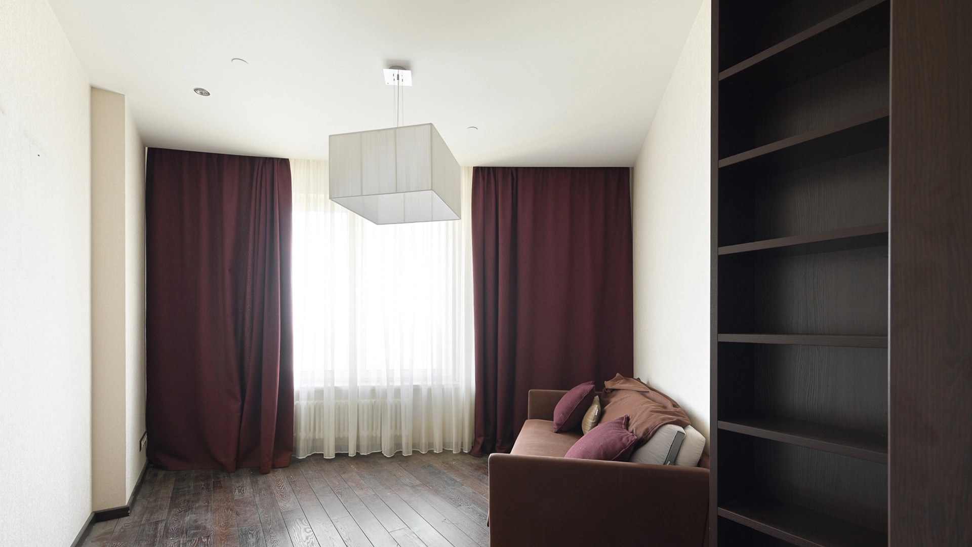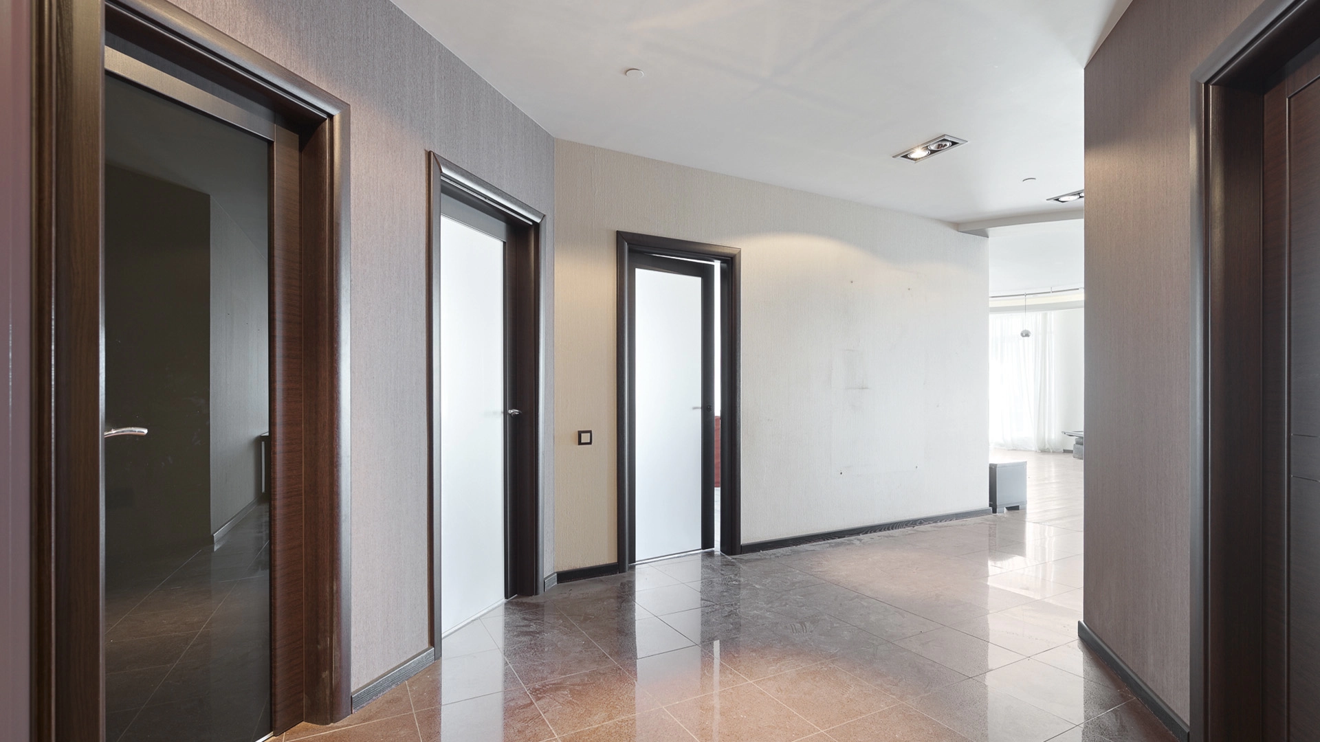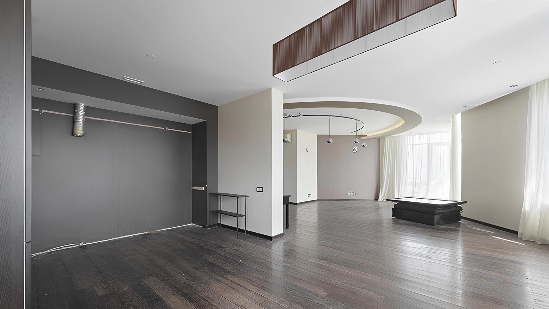 View apartment with 3 bedrooms in the premium class complex "Vorobyovy Gory". The apartment with an area of 188 m² is located on the 29th floor in the building 3. The renovation is done in shades of brown, pinkish and beige colors: modern parquet under dark wood is laid on the floor. Dark cabinets and interior doors look harmoniously against the background of light-colored walls. Air conditioners are installed in the living room and 2 bedrooms. Layout: spacious living room with kitchen area, 3 bedrooms, 2 bathrooms, dressing room, hall. Picturesque views of Moscow State University, lush park and the towers of the business center "Moscow City".