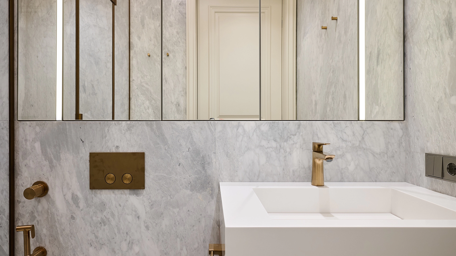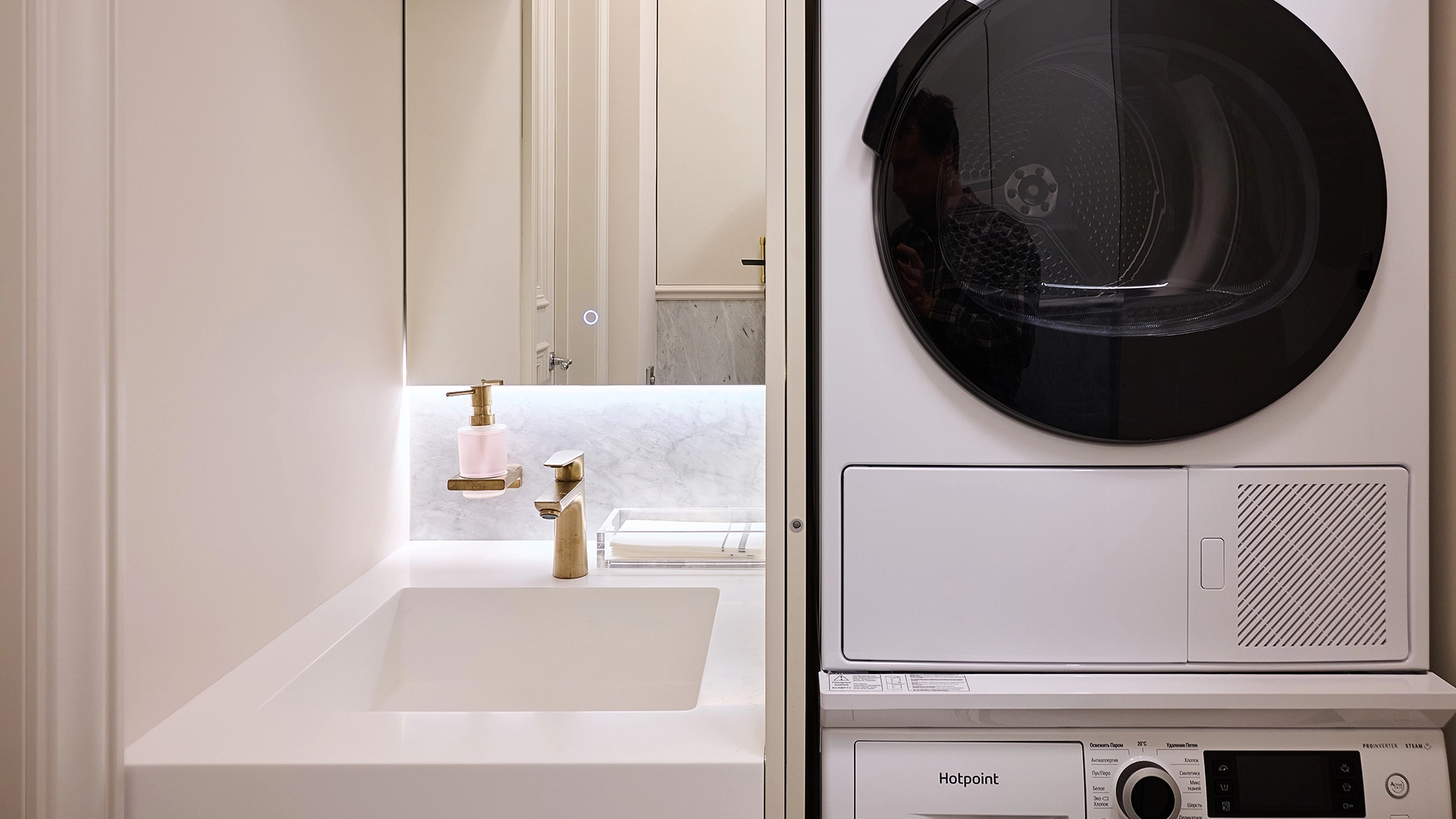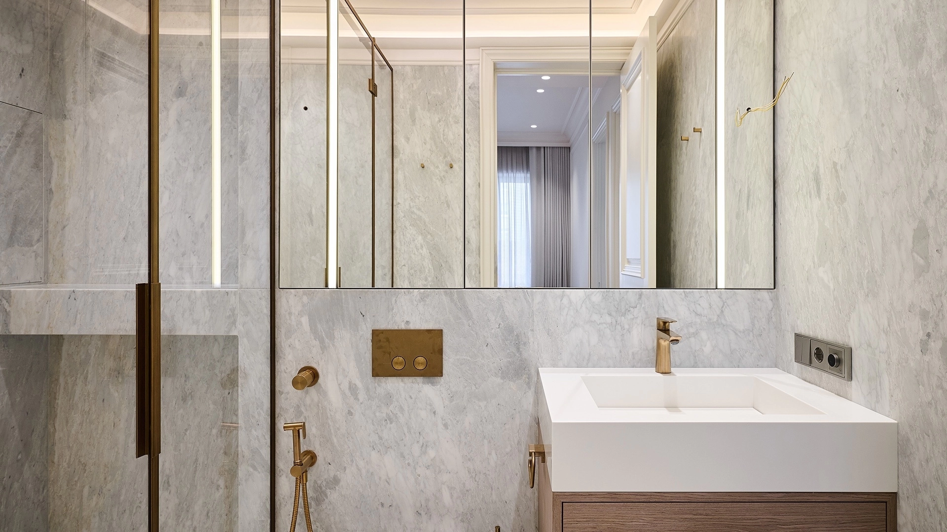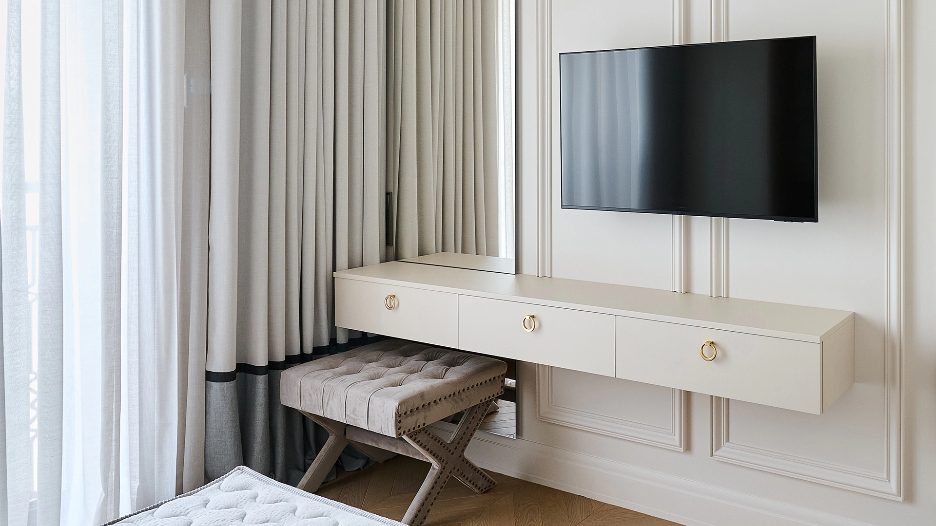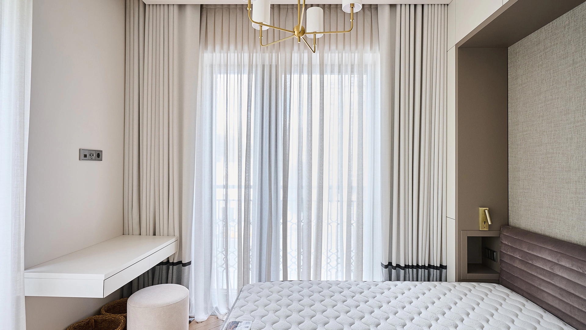 Two-bedroom apartments with total area of 63 m² in the complex of club houses "Dolgorukovskaya, 25". The corner apartment is located on the third floor in the building 2. The bright interior is decorated in the style of modern classics. High ceilings, panoramic floor-to-ceiling windows, lots of natural light. Layout: spacious kitchen-living room, two bedrooms, two bathrooms, dressing room, hall. The windows overlook two sides, a private courtyard and the street.