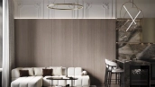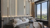 Club house for 36 apartments on the bank of Mosfilmovsky pond. From the house you can go out to a private park with a recreation area. In the house you can choose an apartment with high ceilings and panoramic windows, or a penthouse with a terrace on the top floor.
