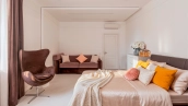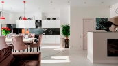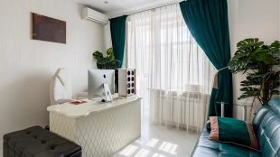 Various lighting scenarios have been thought out - designer chandeliers, wall lamps and spotlights. The functional layout includes a kitchen-living room with a dining area, a second living room, four bedrooms, bathrooms, dressing rooms, three balconies and a hall. The windows are oriented on three sides of the world, overlooking the landscaped area of the complex and a quiet alley.