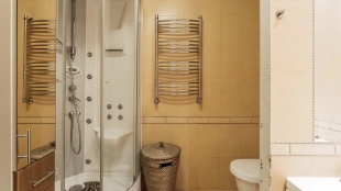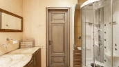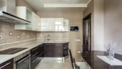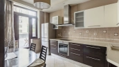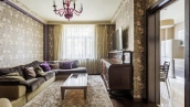 1 bedroom apartment with terrace in the premium-class complex "Shuvalovsky Quarter" near Moscow State University. The apartment with an area of 78 m² is located on the 3rd floor of the building 3. The apartment is renovated in classic style, the ceilings are decorated with suspended chandeliers, the floor is carpeted. The interiors are fully equipped with furniture and household appliances. There is a living room, a kitchen-dining room with access to the terrace, a bedroom with a dressing room, a bathroom with bath and shower, a hallway. The open terrace of 100 m² allows you to organize a cozy seating area with sun loungers, from where you can enjoy panoramic views of the landscaped courtyard.