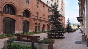 Complex of luxury class apartments on Sofiyskaya embankment. The windows offer views of the Kremlin Embankment and the Cathedral of Christ the Savior. In the private inner park with landscaping placed benches and a children's playground.