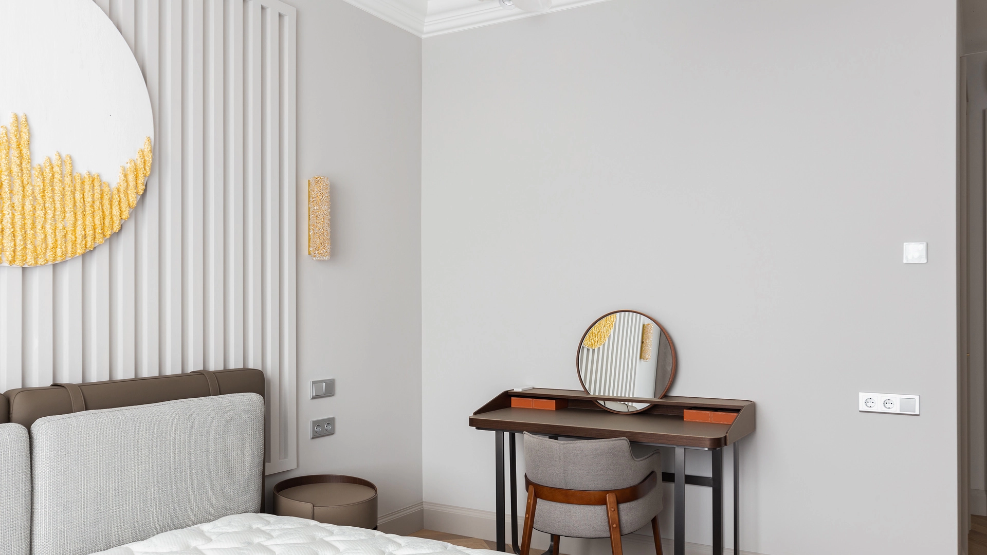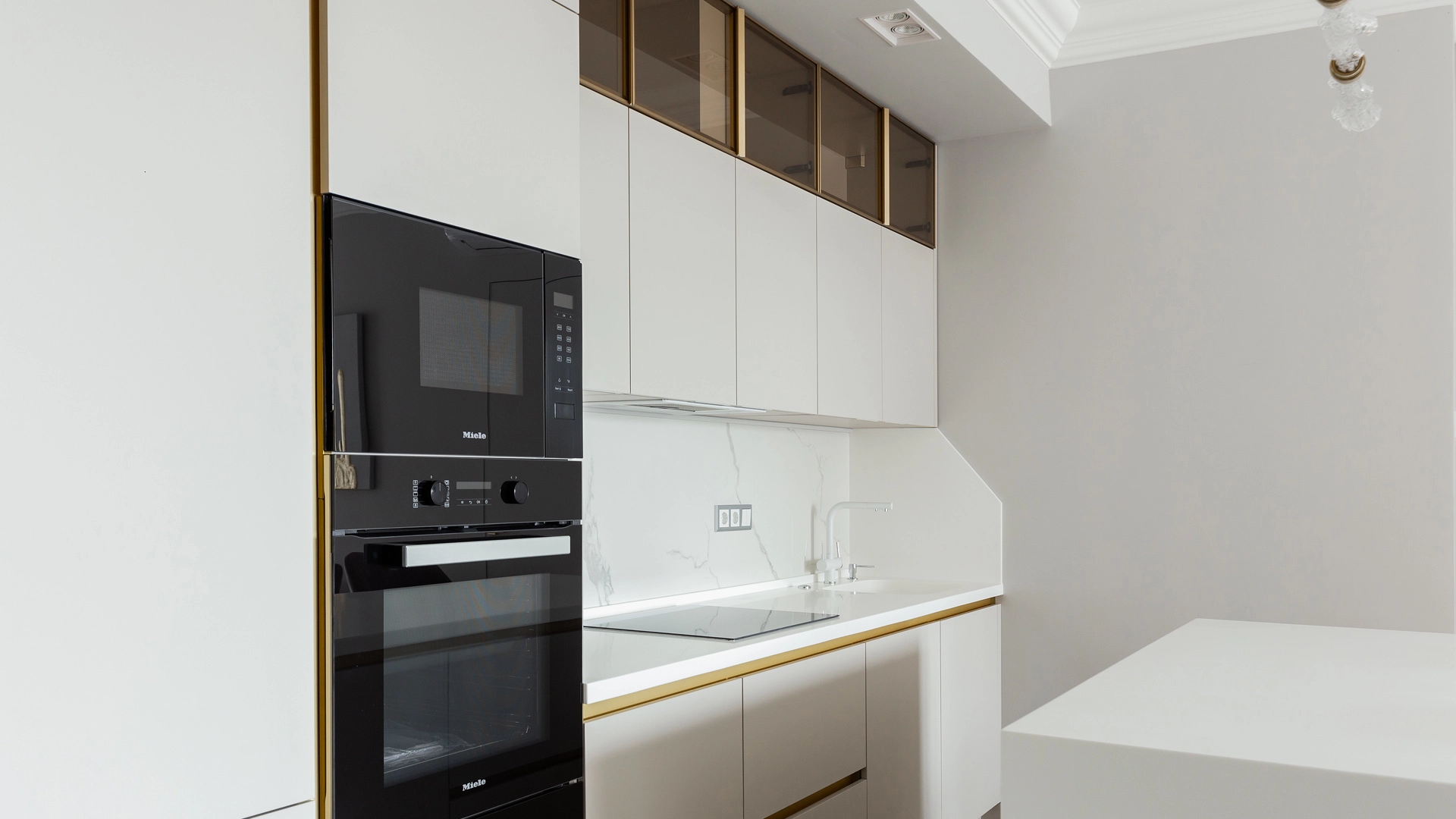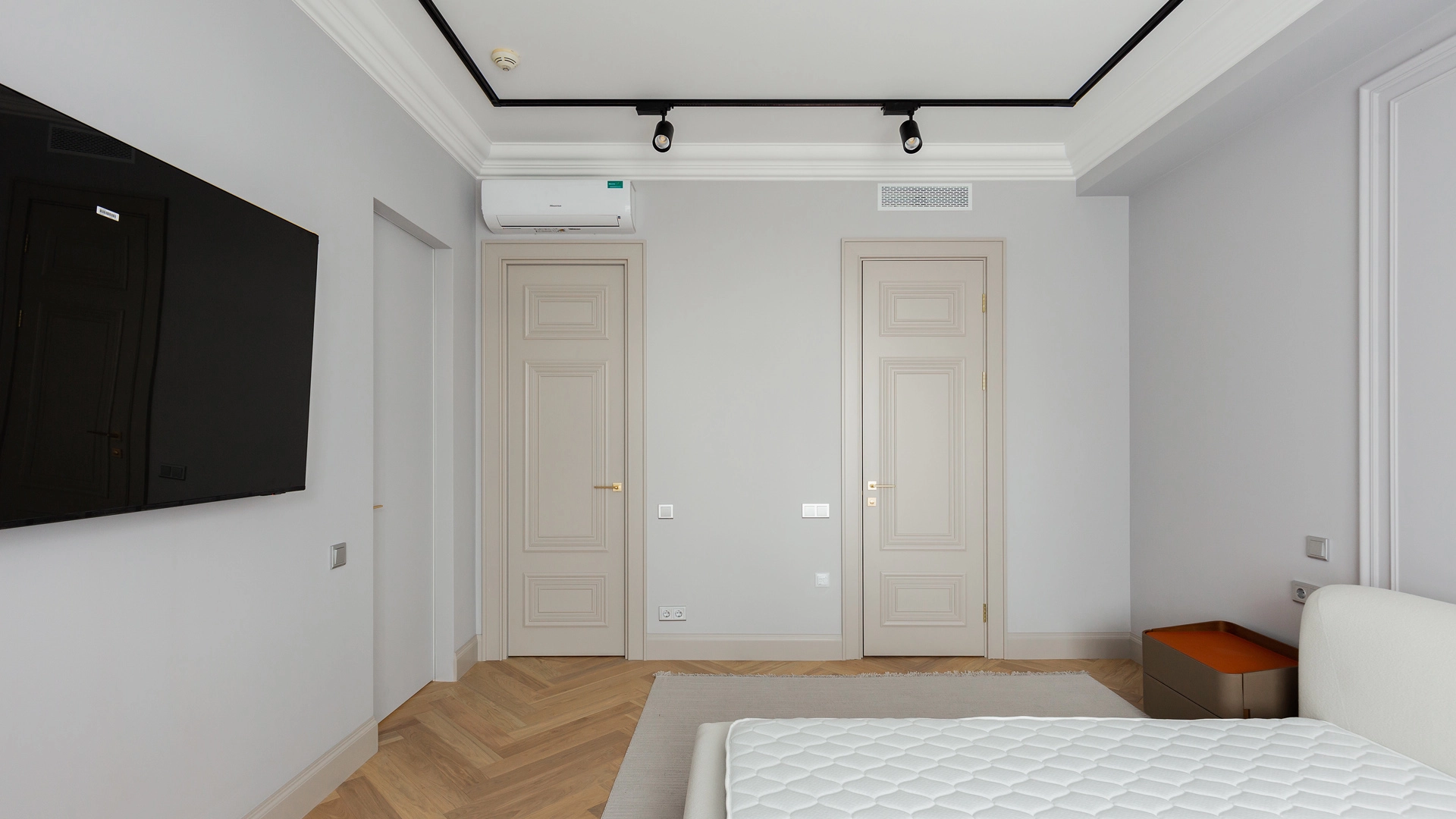 A two-bedroom apartment in the premium-class complex "Setun Valley". The apartment with total area of 112 m² is located on the 36th floor of the building B. The apartment is finished in neoclassical style according to the individual project. The interiors are decorated with decorative moldings, paintings and designer chandeliers. Different lighting scenarios are thought out, split-system is installed. The apartment is fully furnished, the kitchen is equipped with built-in appliances Miele.