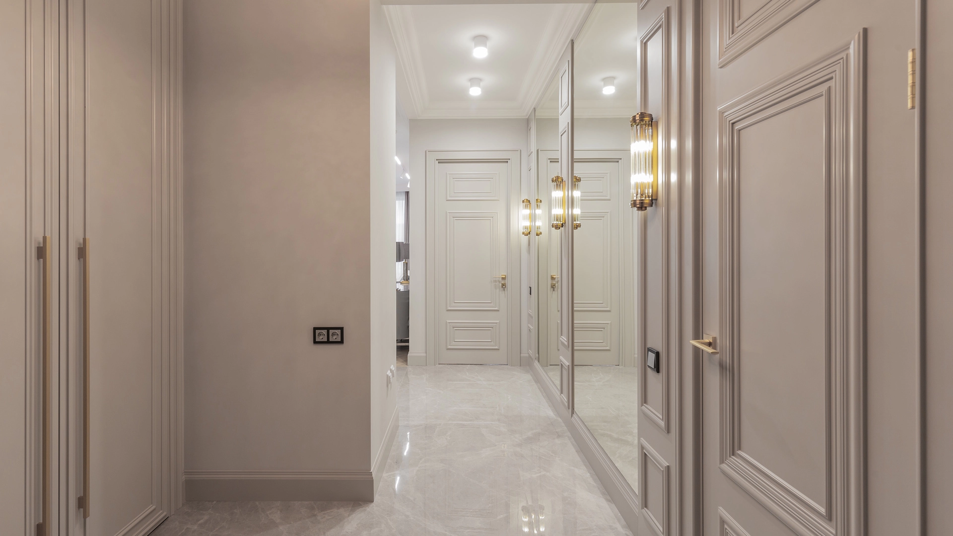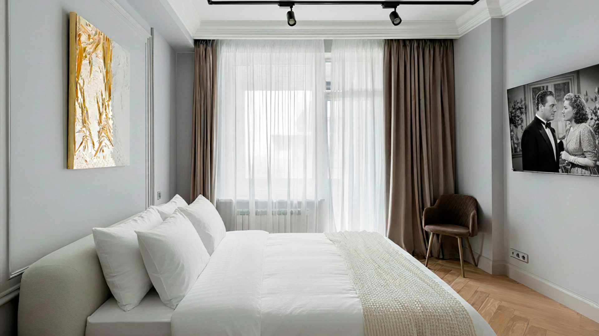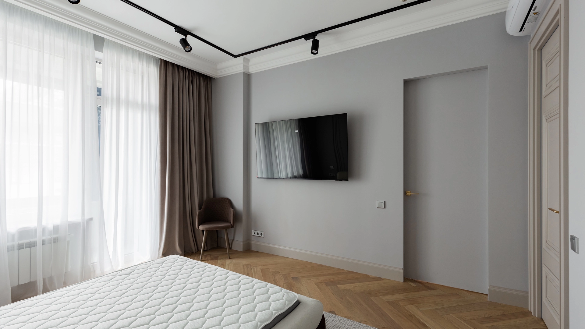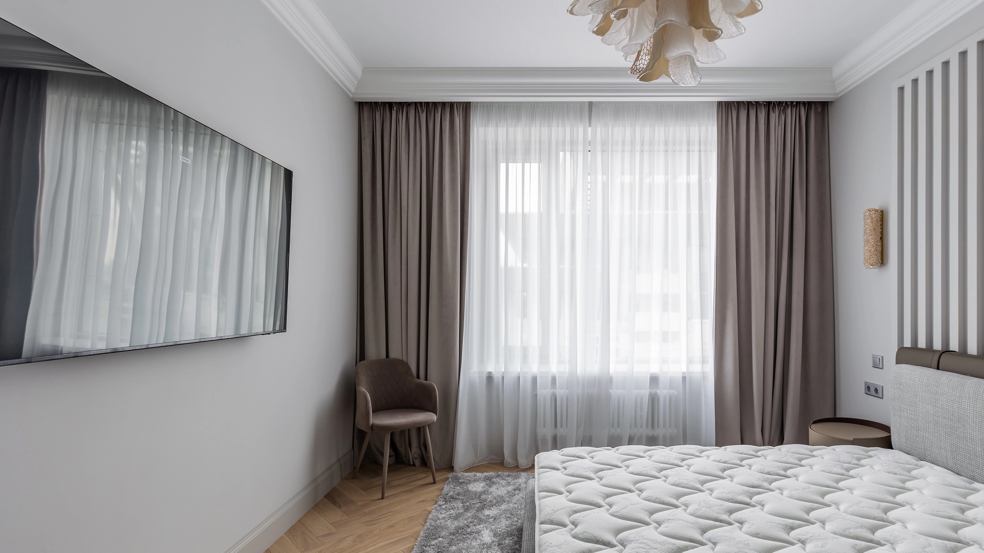 A two-bedroom apartment in the premium-class complex "Setun Valley". The apartment with total area of 112 m² is located on the 36th floor of the building B. The apartment is finished in neoclassical style according to the individual project. The interiors are decorated with decorative moldings, paintings and designer chandeliers. Different lighting scenarios are thought out, split-system is installed. The apartment is fully furnished, the kitchen is equipped with built-in appliances Miele.