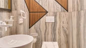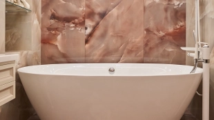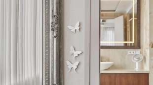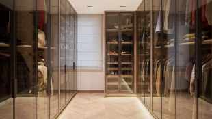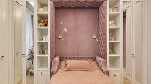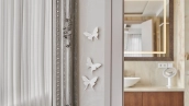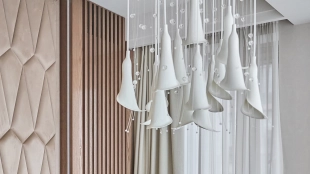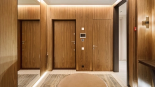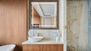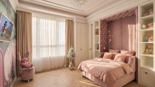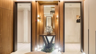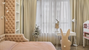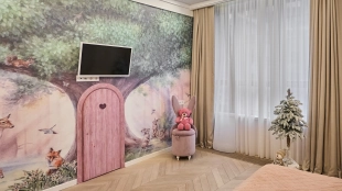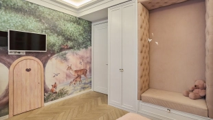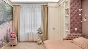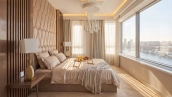 A 3-bedroom apartment with total area of 165 m² in River Park business class neighborhood on the bank of the Moskva River. The apartment with a terrace and direct water views is located on the 8th floor. The apartment is finished in neoclassical style, the interiors are decorated with multi-level ceilings, graphics on the walls and designer chandeliers handmade by Sagarti. Installed system of supply and exhaust ventilation, smart home and water purification.