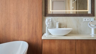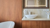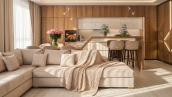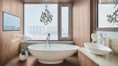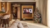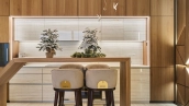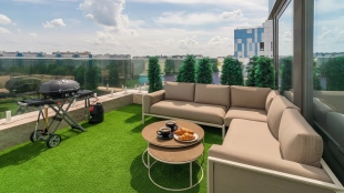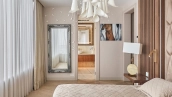 The apartment is equipped with premium furniture and appliances Gaggenau. All wooden elements are made of teak. The functional layout includes a kitchen-living room with dining area, master bedroom with its own dressing room and bathroom, 2 children's bedrooms with bathroom, laundry room, guest bathroom and hall. Thanks to panoramic glazing, the space is filled with natural light and warmth.