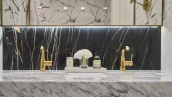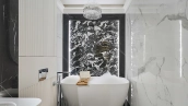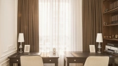 Corner apartment with 2 bedrooms and a study in the business class neighborhood Life-Botanichesky Sad. The apartment with designer finishing with the area of 116 m² is located on the 3rd floor. The interior is decorated in a classic style using natural materials - parquet, marble and tiles from Italy, brass elements and stucco details, textile curtains by Togas. Lighting and sanitary ware from leading Italian and German manufacturers.