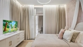 The apartment is fully furnished and equipped with household appliances Miele, Smeg and Bosch. Air conditioning and ventilation systems, video surveillance, water filtration, electric curtains, burglar-proof doors and modern boilers have been installed. The layout includes a kitchen-living room, a master bedroom with its own bathroom and a spacious dressing room with a working area, a second bedroom with a glazed loggia, a bathroom, a laundry room and a hall. Wide windows are oriented on two sides of the world.