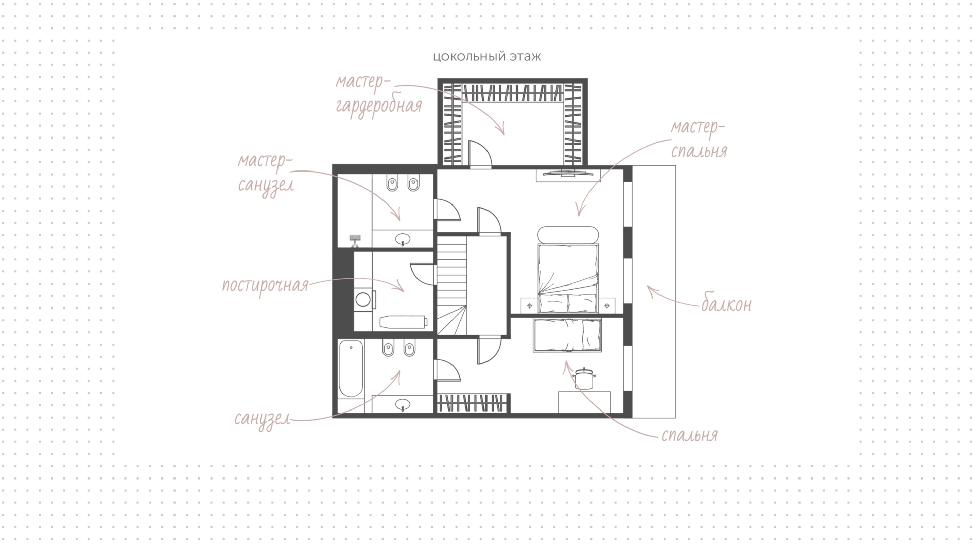 Basement: master bedroom with a spacious dressing room of 15 m² and a bathroom, guest bedroom with bathroom, storage room, laundry room. 1st floor: living room-kitchen-dining room in a single space, bio fireplace with live fire, hammam with lighting, guest bathroom, storage room. Installed supply exhaust ventilation system. Parking space in the mechanized parking.