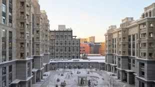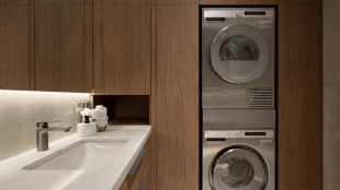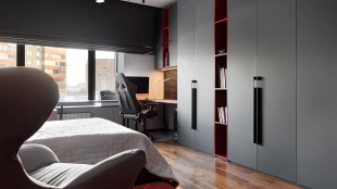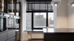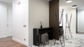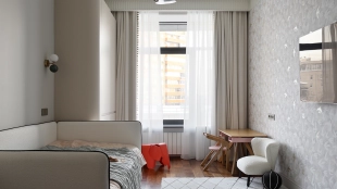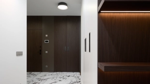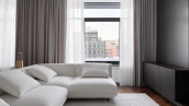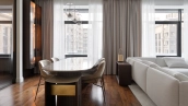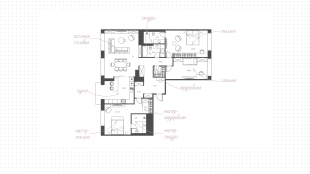 The functional layout includes a living room with dining area, kitchen, master bedroom with dressing room and bathroom, 2 bedrooms, two bathrooms, a pantry and a hall. In addition, the project provides plenty of storage space. Windows, oriented on two sides of the world, open views of the city and landscaped area of the complex.