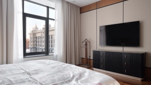Spacious 3-bedroom apartment with a total area of 172 m² in a premium class complex "Saturday" on the 5th floor. Author's finishing with the use of natural materials from European manufacturers. Installed flow and exhaust ventilation systems, warm floors, LIREGUS sockets and switches in a glass frame.